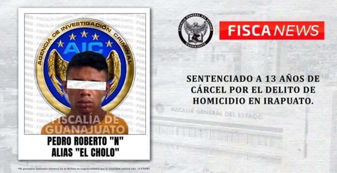 El Ministerio Público probó ante un Juez su acusación en contra de PEDRO ROBERTO “N” alias “El Cholo”, y obtuvo una sentencia condenatoria de 13 años de cárcel por el asesinato de Luis Fernando “N”, ocurrido la tarde del pasado 23 de febrero de 2021, en la esquina que forman las calles Abedul con Jabalí de la colonia Ganadera en la ciudad de Irapuato.