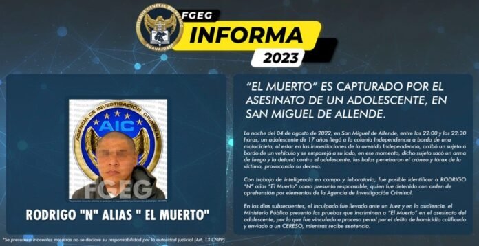 La noche del 04 de agosto de 2022, en San Miguel de Allende, entre las 22:00 y las 22:30 horas, un adolescente de 17 años llegó a la colonia Independencia a bordo de una motocicleta, al estar en las inmediaciones de la avenida Independencia, arribó un sujeto a bordo de un vehículo y se emparejó a su lado, en ese momento, dicho sujeto sacó un arma de fuego y la detonó contra el adolescente, las balas penetraron el cráneo y tórax de la víctima, provocando su deceso.