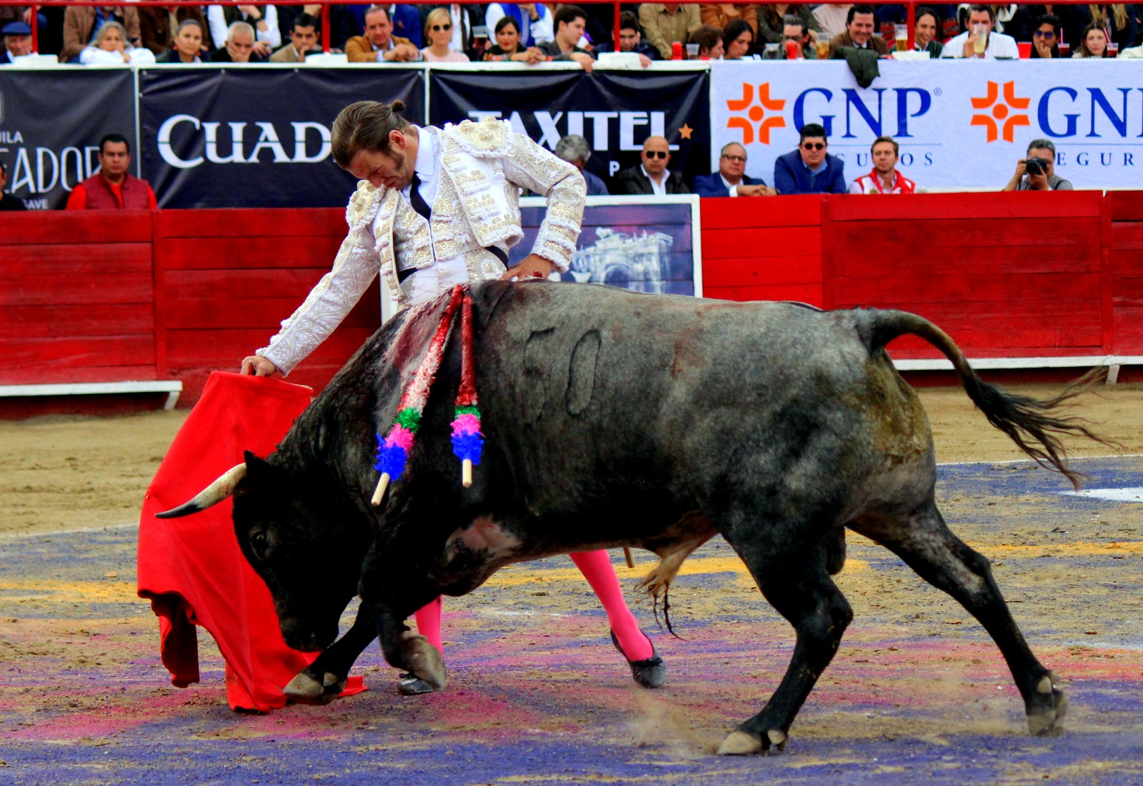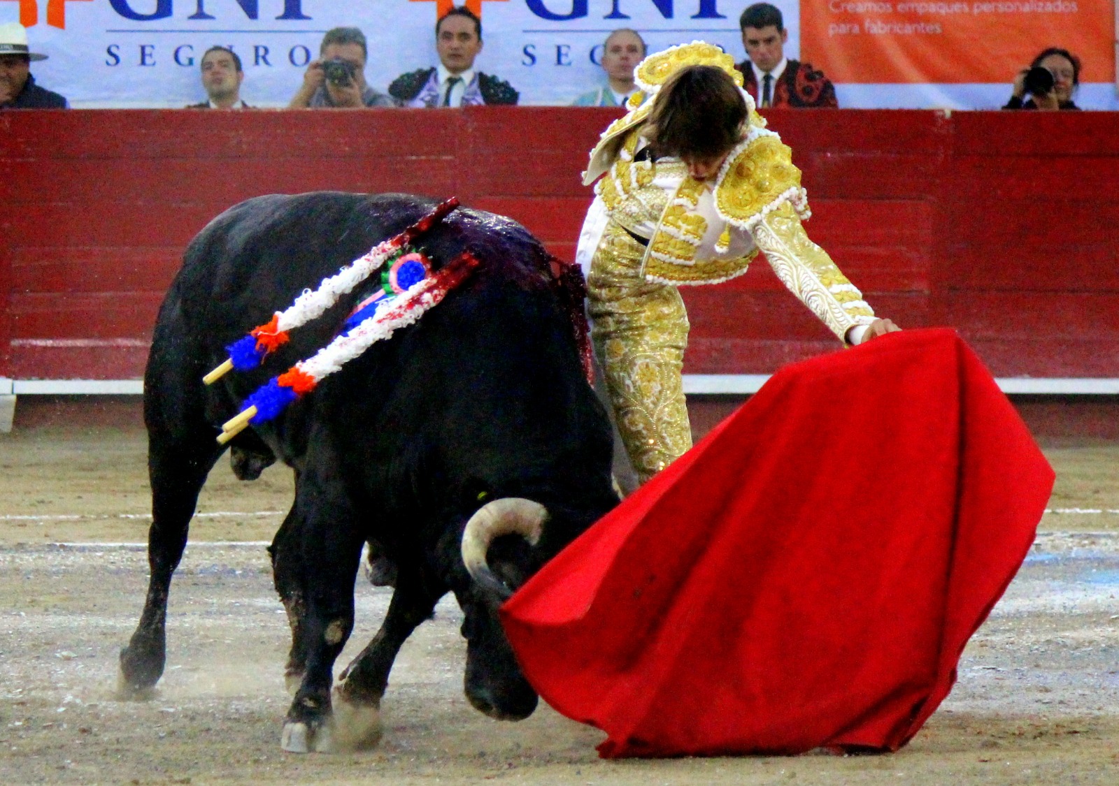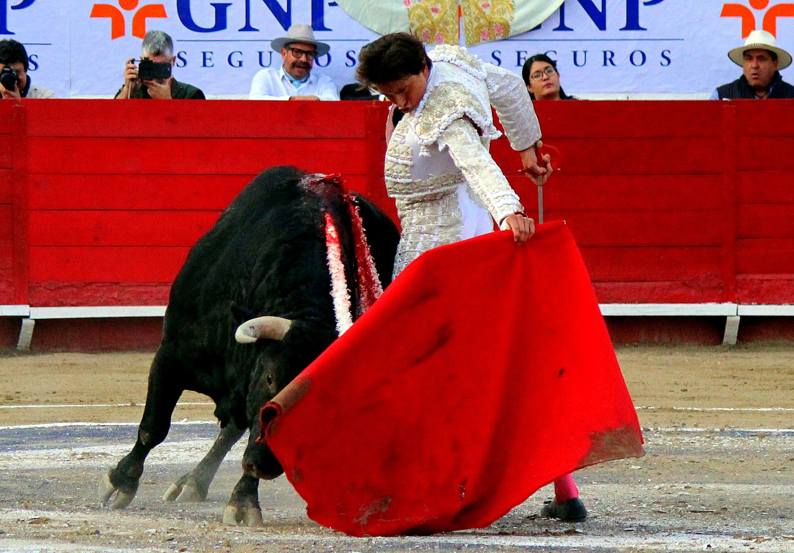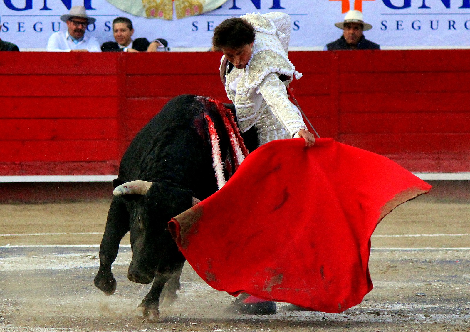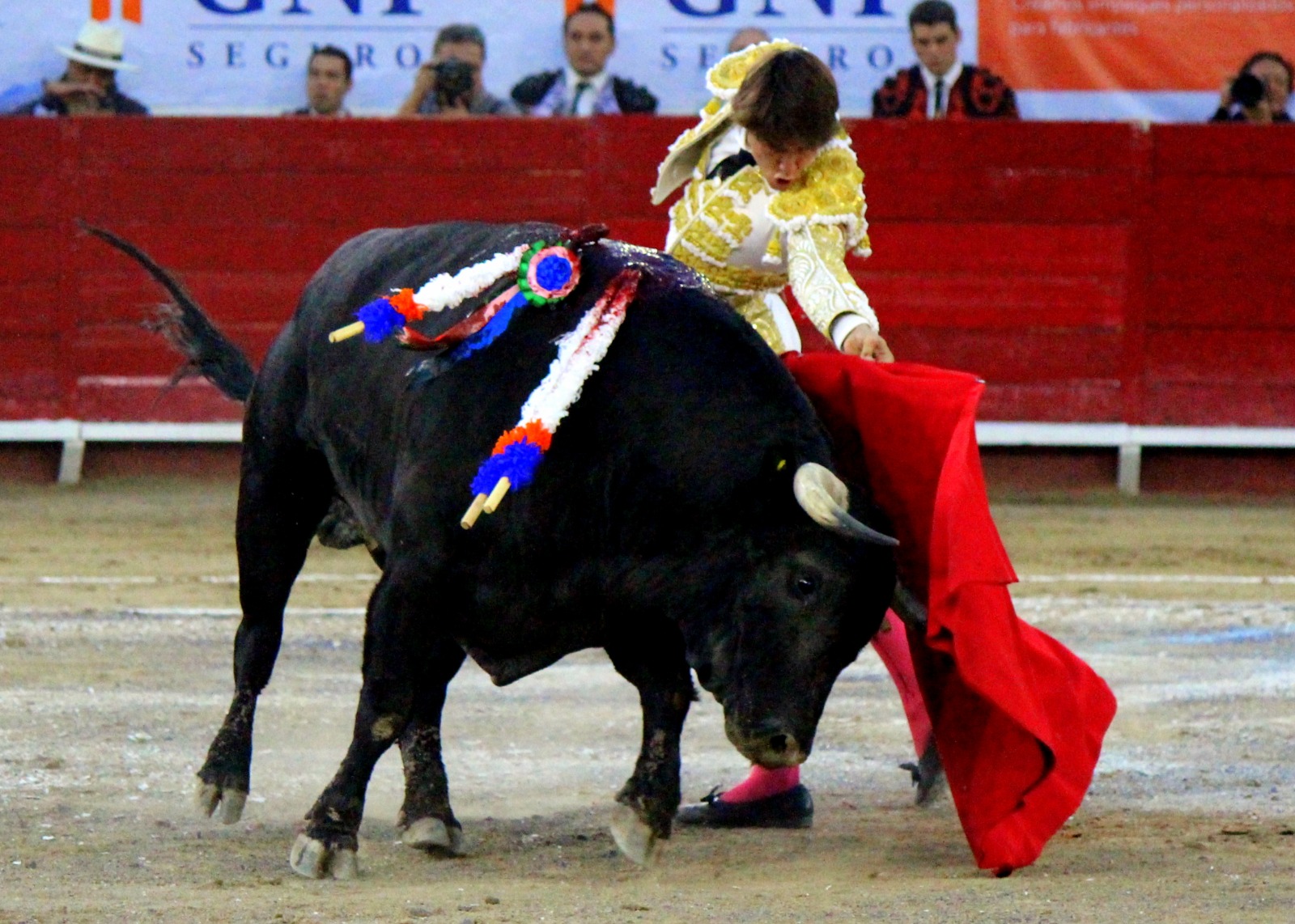 El novel espada Arturo Gilio salió al ruedo dispuesto a triunfar y no dejarse ganar por sus alternantes, por muy figuras que fueran, por eso a su primero lo fue toreando con mucha torería desde el capote arrancando por ello los olés con mucha fuerza, después con la moleta le bordó tandas al noble toro por la derecha a izquierda en redondo y con mucho temple, la gente todo le coreaba y luego cuando se fue por derecho dejando un estoconazo, fue levantado en vilo con el pitó derecho cayendo por fortuna de pie, pero se dolía mucho del costado izquierdo. Al parecer sufrió fractura de costillas. Las 2 orejas como premio le dieron y con ellas recorrió el ruedo haciendo gestos de dolor. Se temía que ya no iba a salir Gilio de la enfermería, pero el chaval en un gesto de pundonor y vergüenza torera, salió ya sin la casaquilla y de rodillas con el capote recibió al segundo de su lote por verónicas y ya de pie pegó unas chicuelinas y con la muleta comenzó con cambiados por la espalda a medio ruedo, después a correr la mano en derechazos y naturales muy toreros y templados con remates, todo ante la algarabía de la gente que conectó mucho con él, por eso cuando se tiró a matar y dejó una media y después un descabello, le dieron otra oreja entre gritos de torero torero. Al final salió junto con Roca Rey a hombros de la plaza, pero directo al hospital.
