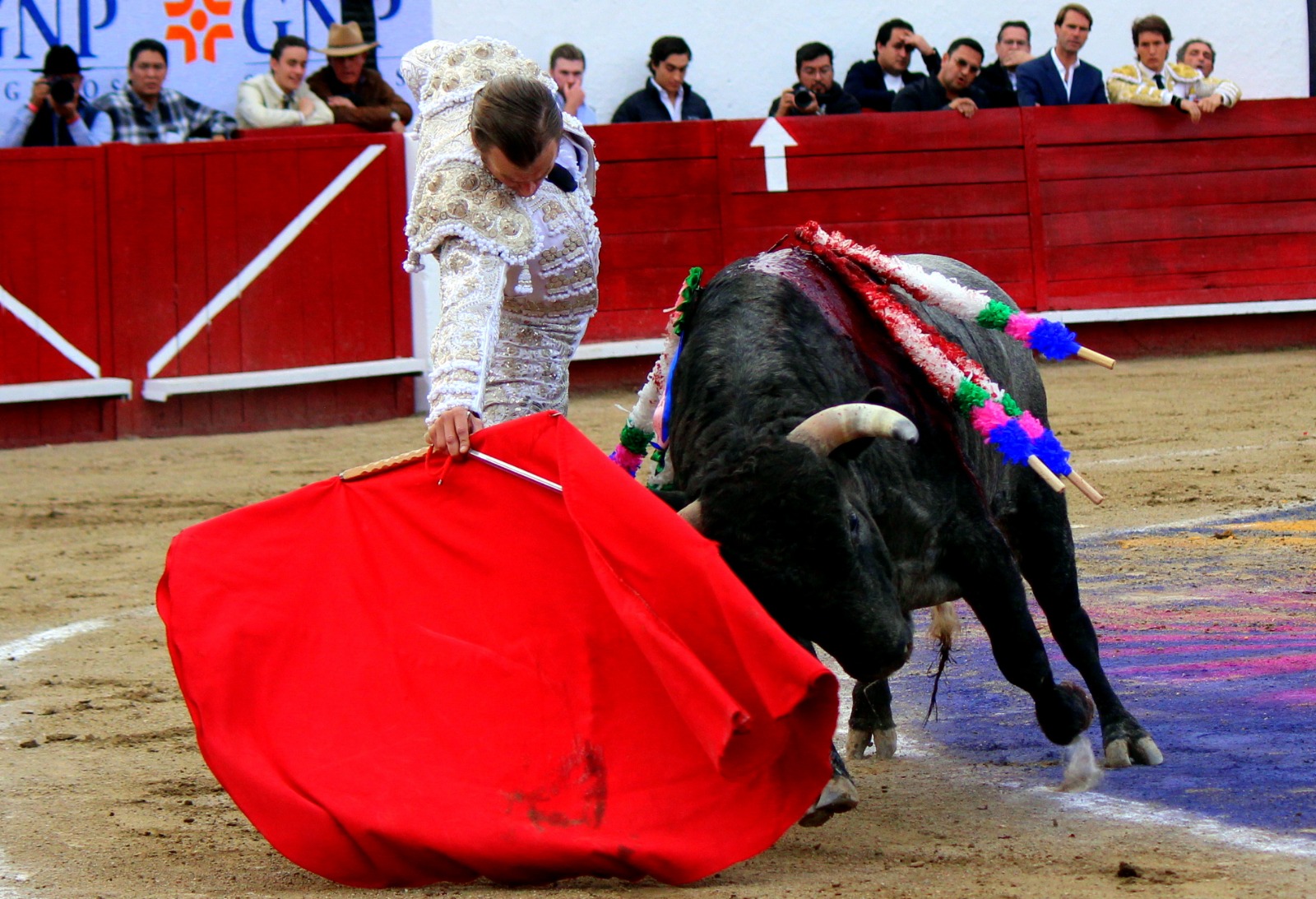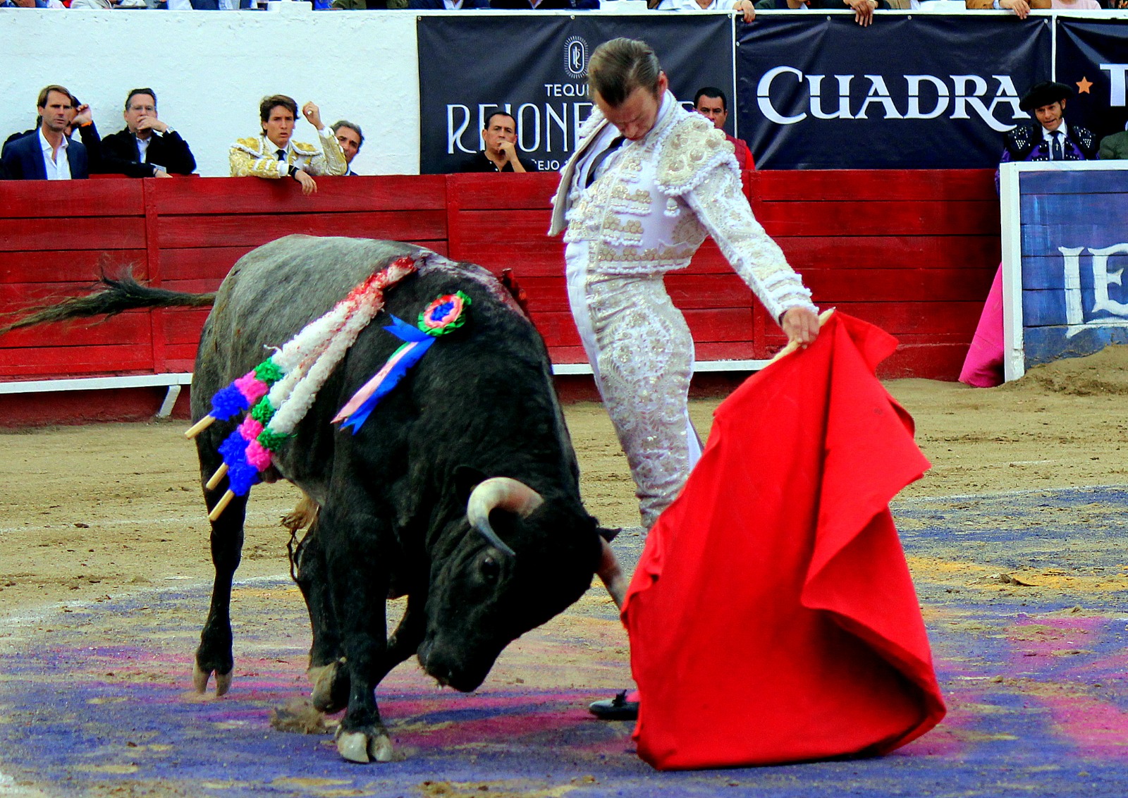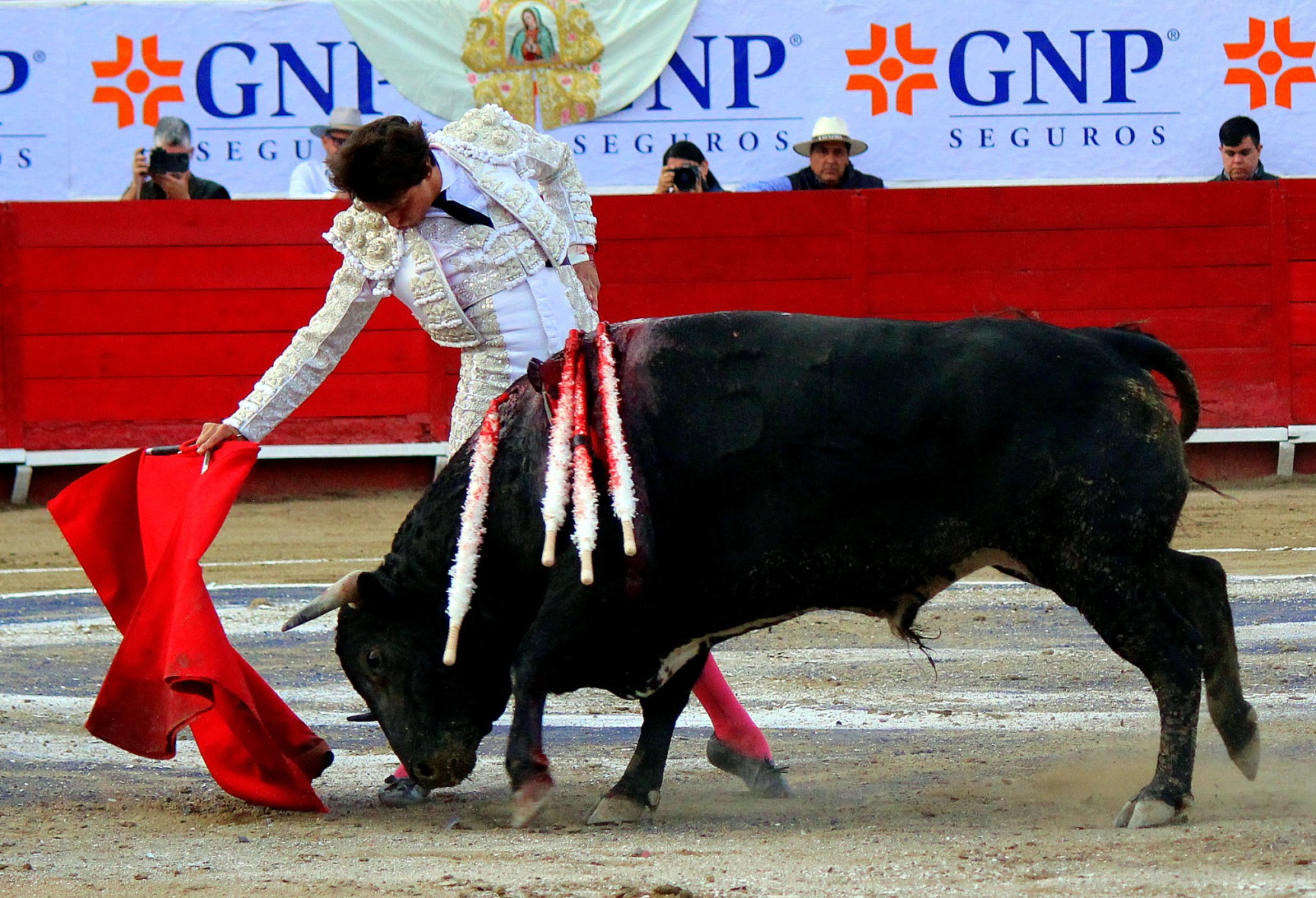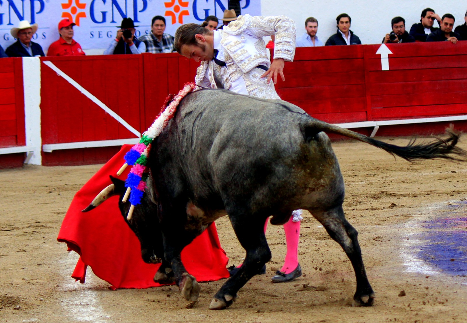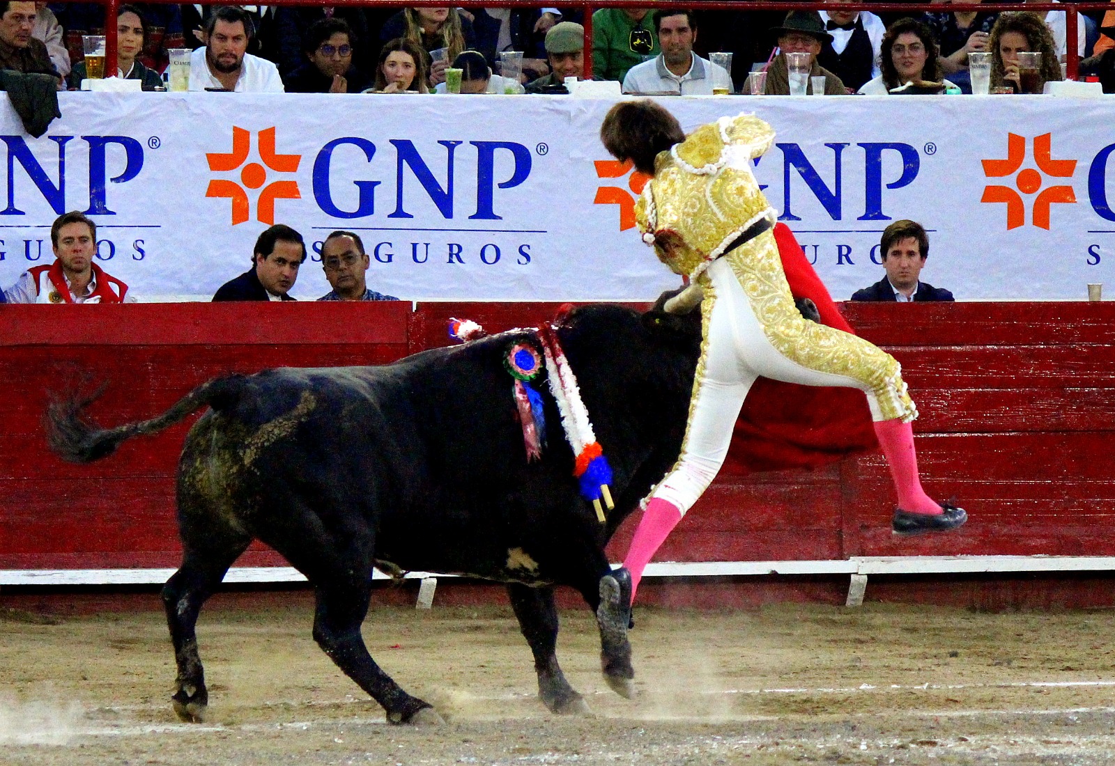 El novel espada Arturo Gilio salió al ruedo dispuesto a triunfar y no dejarse ganar por sus alternantes, por muy figuras que fueran, por eso a su primero lo fue toreando con mucha torería desde el capote arrancando por ello los olés con mucha fuerza, después con la moleta le bordó tandas al noble toro por la derecha a izquierda en redondo y con mucho temple, la gente todo le coreaba y luego cuando se fue por derecho dejando un estoconazo, fue levantado en vilo con el pitó derecho cayendo por fortuna de pie, pero se dolía mucho del costado izquierdo. Al parecer sufrió fractura de costillas. Las 2 orejas como premio le dieron y con ellas recorrió el ruedo haciendo gestos de dolor. Se temía que ya no iba a salir Gilio de la enfermería, pero el chaval en un gesto de pundonor y vergüenza torera, salió ya sin la casaquilla y de rodillas con el capote recibió al segundo de su lote por verónicas y ya de pie pegó unas chicuelinas y con la muleta comenzó con cambiados por la espalda a medio ruedo, después a correr la mano en derechazos y naturales muy toreros y templados con remates, todo ante la algarabía de la gente que conectó mucho con él, por eso cuando se tiró a matar y dejó una media y después un descabello, le dieron otra oreja entre gritos de torero torero. Al final salió junto con Roca Rey a hombros de la plaza, pero directo al hospital.
