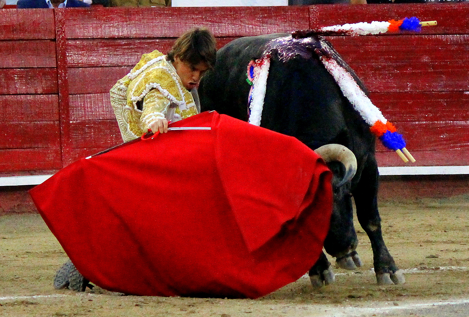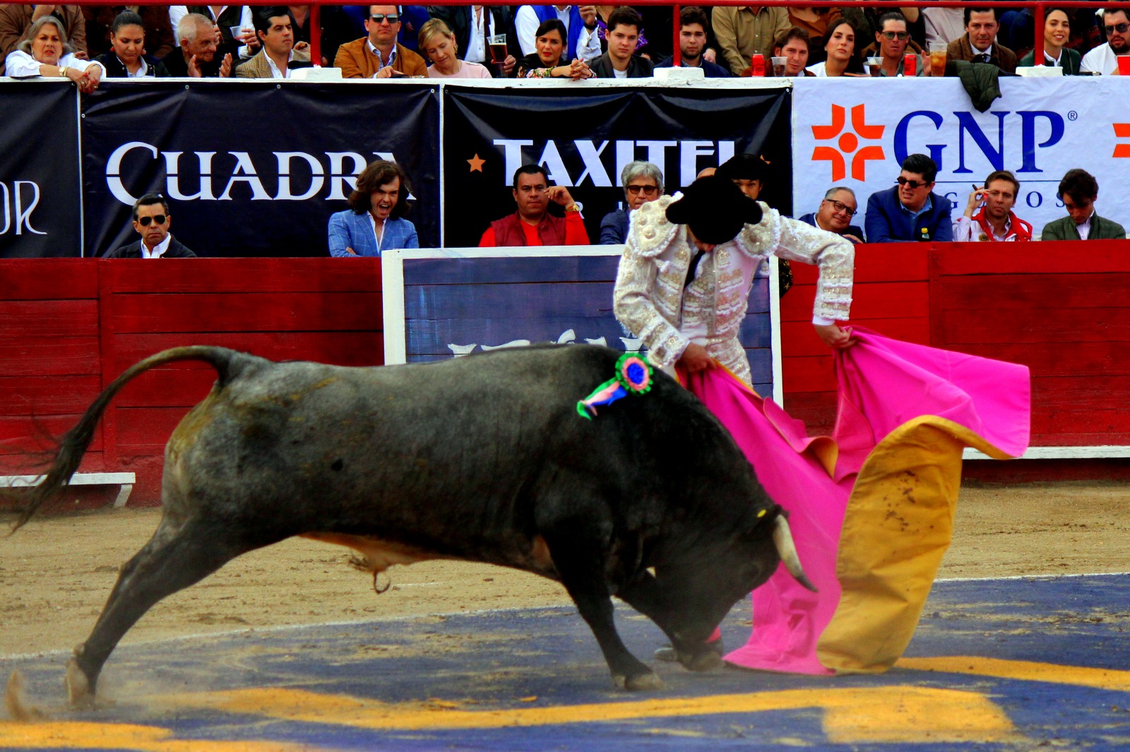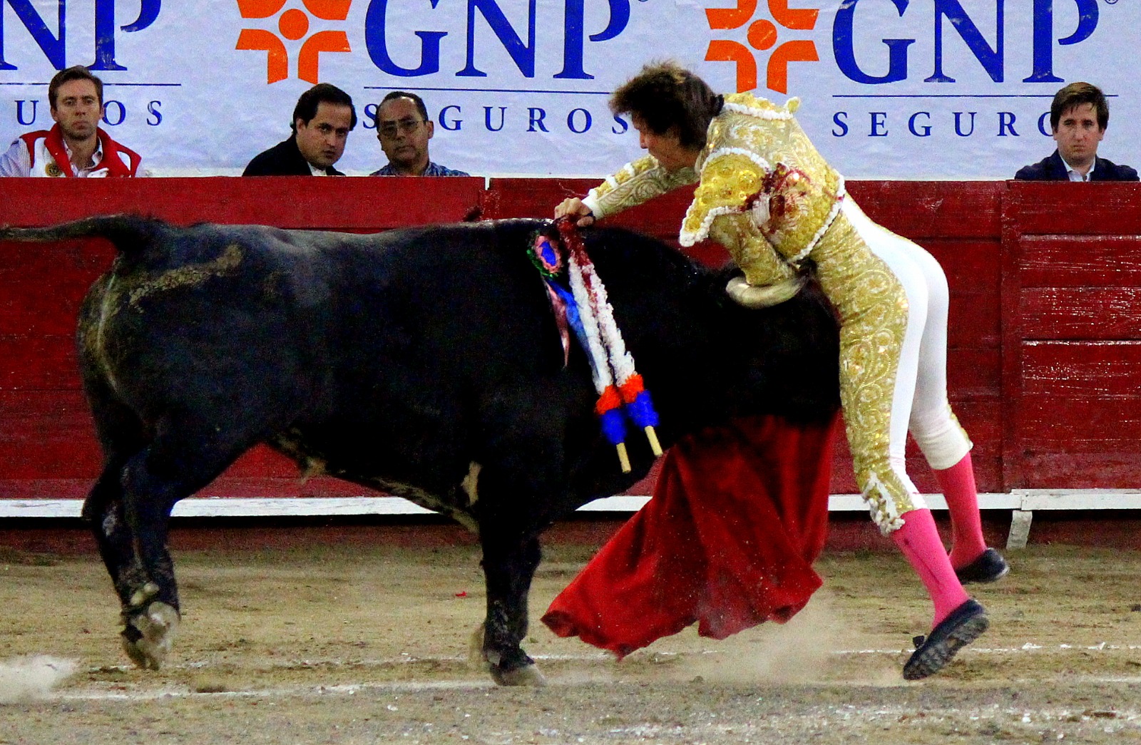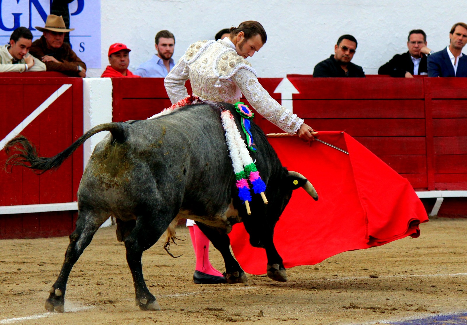 El novel espada Arturo Gilio salió al ruedo dispuesto a triunfar y no dejarse ganar por sus alternantes, por muy figuras que fueran, por eso a su primero lo fue toreando con mucha torería desde el capote arrancando por ello los olés con mucha fuerza, después con la moleta le bordó tandas al noble toro por la derecha a izquierda en redondo y con mucho temple, la gente todo le coreaba y luego cuando se fue por derecho dejando un estoconazo, fue levantado en vilo con el pitó derecho cayendo por fortuna de pie, pero se dolía mucho del costado izquierdo. Al parecer sufrió fractura de costillas. Las 2 orejas como premio le dieron y con ellas recorrió el ruedo haciendo gestos de dolor. Se temía que ya no iba a salir Gilio de la enfermería, pero el chaval en un gesto de pundonor y vergüenza torera, salió ya sin la casaquilla y de rodillas con el capote recibió al segundo de su lote por verónicas y ya de pie pegó unas chicuelinas y con la muleta comenzó con cambiados por la espalda a medio ruedo, después a correr la mano en derechazos y naturales muy toreros y templados con remates, todo ante la algarabía de la gente que conectó mucho con él, por eso cuando se tiró a matar y dejó una media y después un descabello, le dieron otra oreja entre gritos de torero torero. Al final salió junto con Roca Rey a hombros de la plaza, pero directo al hospital.
