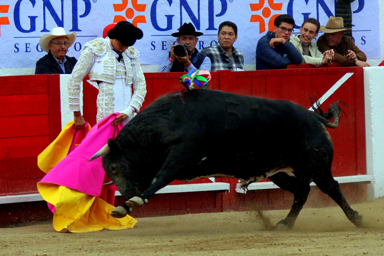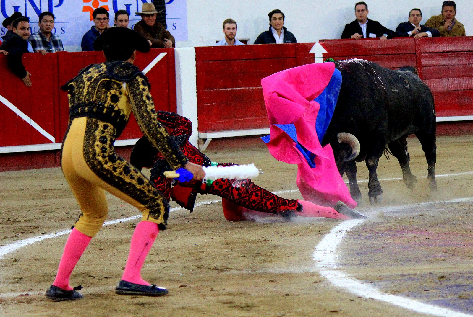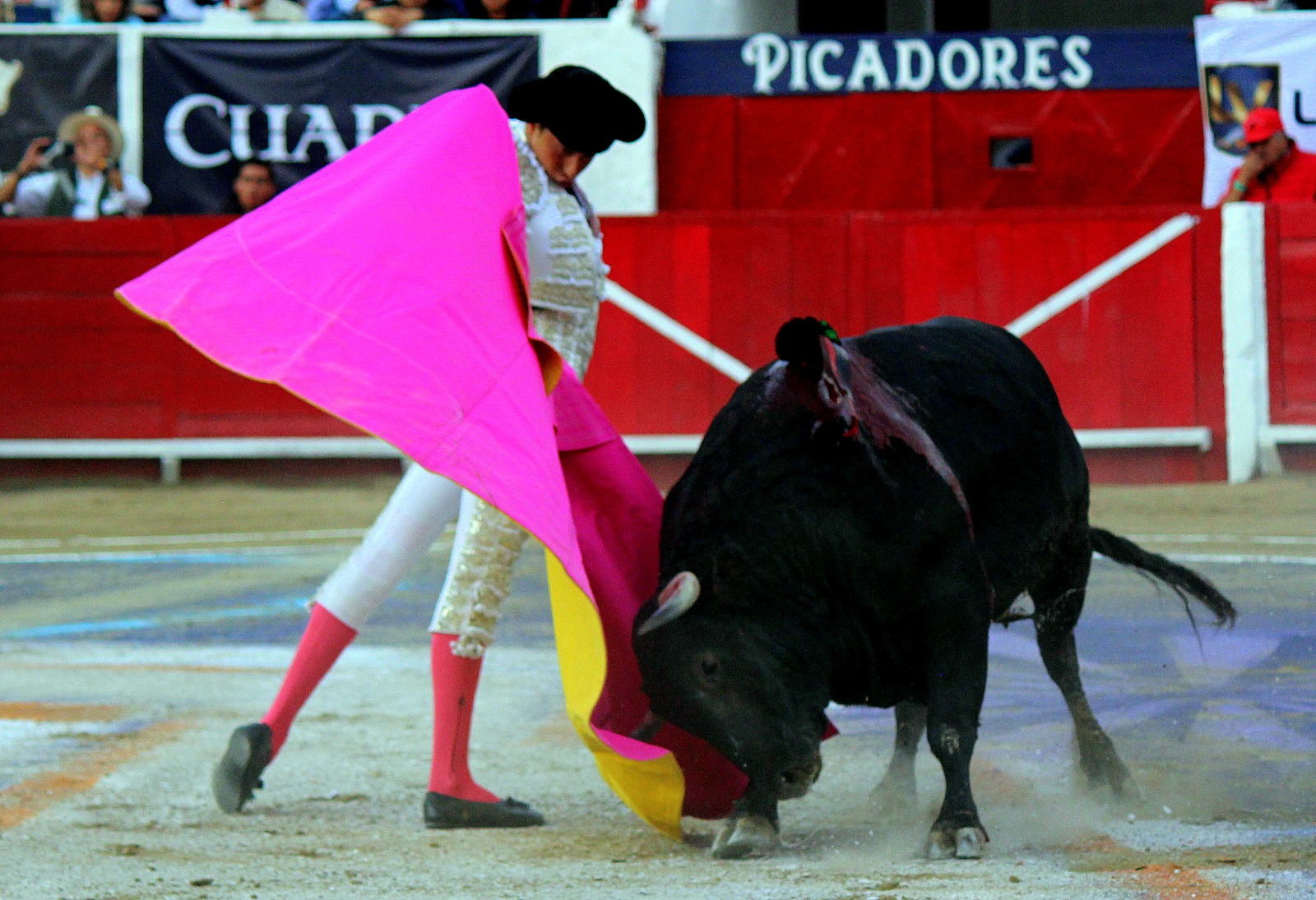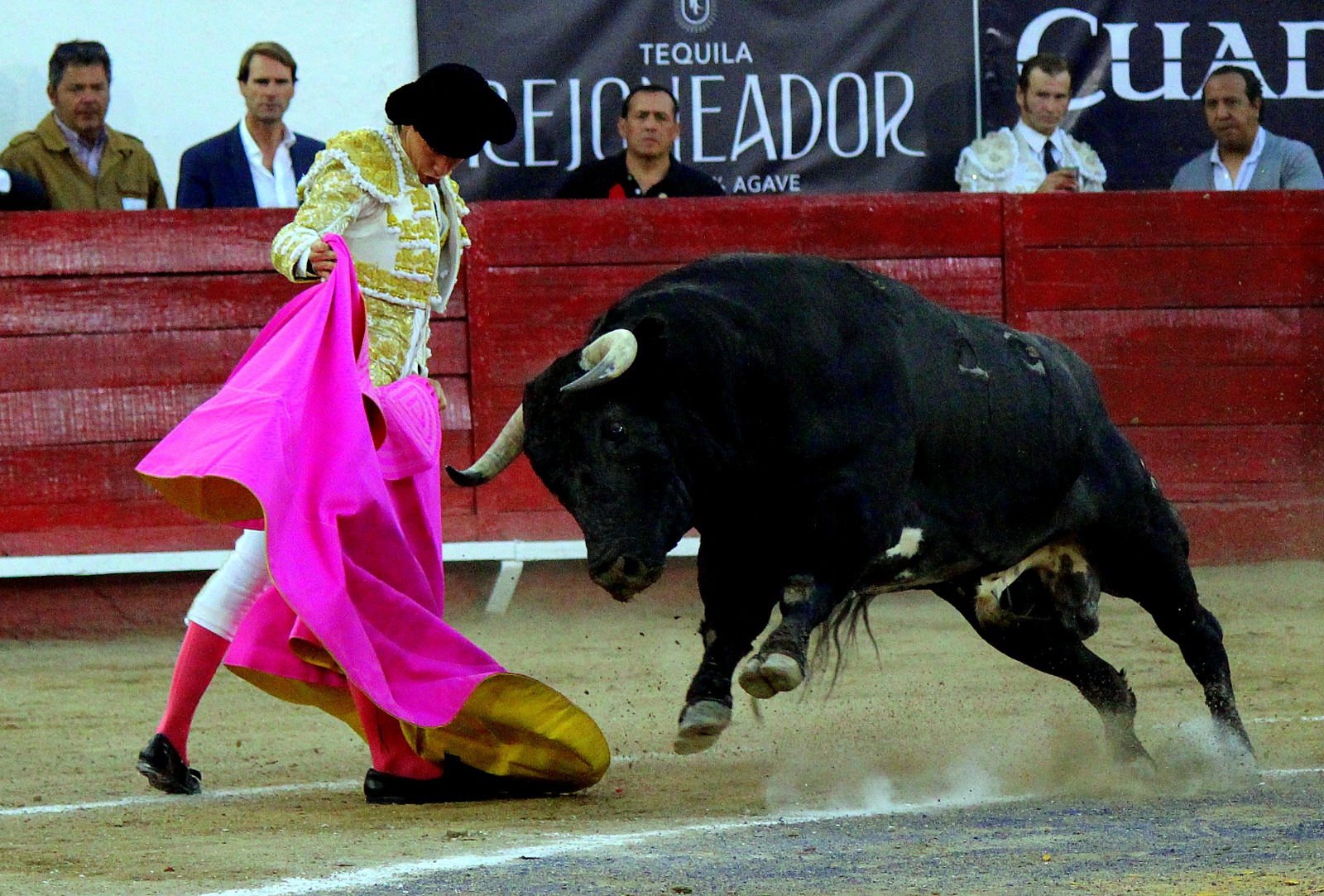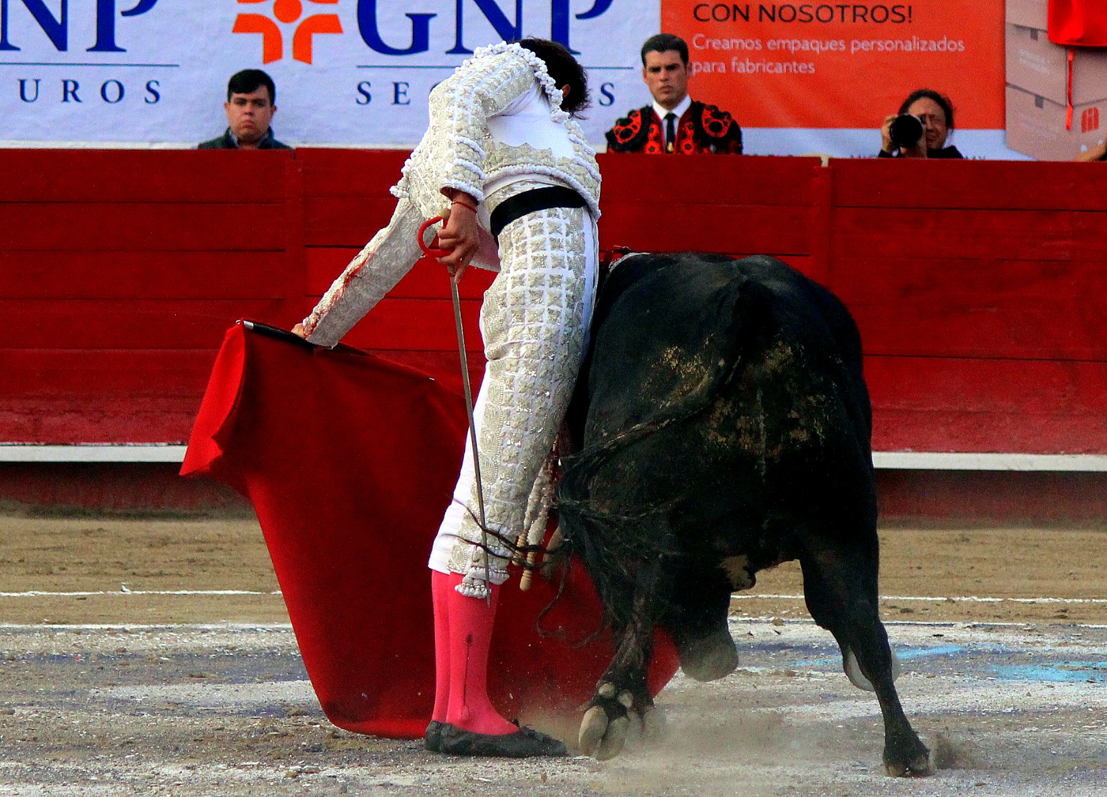 El novel espada Arturo Gilio salió al ruedo dispuesto a triunfar y no dejarse ganar por sus alternantes, por muy figuras que fueran, por eso a su primero lo fue toreando con mucha torería desde el capote arrancando por ello los olés con mucha fuerza, después con la moleta le bordó tandas al noble toro por la derecha a izquierda en redondo y con mucho temple, la gente todo le coreaba y luego cuando se fue por derecho dejando un estoconazo, fue levantado en vilo con el pitó derecho cayendo por fortuna de pie, pero se dolía mucho del costado izquierdo. Al parecer sufrió fractura de costillas. Las 2 orejas como premio le dieron y con ellas recorrió el ruedo haciendo gestos de dolor. Se temía que ya no iba a salir Gilio de la enfermería, pero el chaval en un gesto de pundonor y vergüenza torera, salió ya sin la casaquilla y de rodillas con el capote recibió al segundo de su lote por verónicas y ya de pie pegó unas chicuelinas y con la muleta comenzó con cambiados por la espalda a medio ruedo, después a correr la mano en derechazos y naturales muy toreros y templados con remates, todo ante la algarabía de la gente que conectó mucho con él, por eso cuando se tiró a matar y dejó una media y después un descabello, le dieron otra oreja entre gritos de torero torero. Al final salió junto con Roca Rey a hombros de la plaza, pero directo al hospital.
