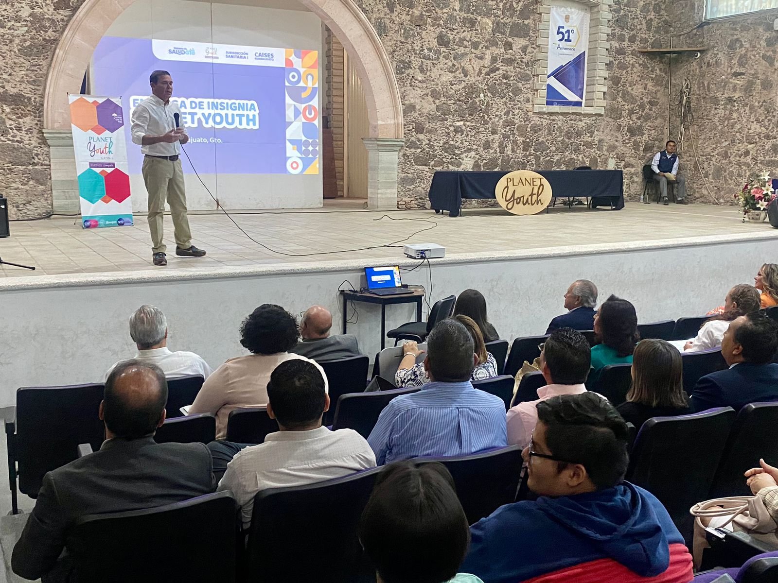 Guanajuato. Guanajuato. 27 de abril de 2023.- El Sistema de Salud de Guanajuato que encabeza el Dr. Daniel Díaz hizo entrega de 11 insignias Planet Youth en la capital del estado.