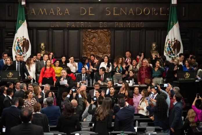 Con 86 votos a favor por parte de Morena, PVEM y PT; y 41 en contra de PAN, PRI y MC, fue aprobada en lo general la Reforma al Poder Judicial en el Senado de la República, esto durante una larga jornada de debate donde estudiantes y civiles, tomaron las instalaciones para protestar en contra, y los mismos senadores de la bancada que rechazaba la iniciativa gritaba “traidor” a Miguel Ángel Yunes Linares.