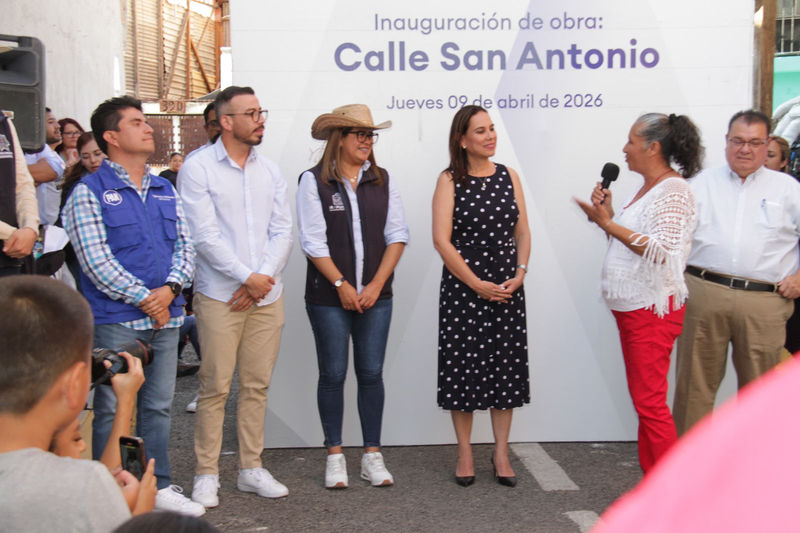La presidenta municipal, Lorena Alfaro García, encabezó la inauguración de la calle San Antonio, en la colonia San Martín de Porres, como parte de las acciones de mejora urbana en el municipio.