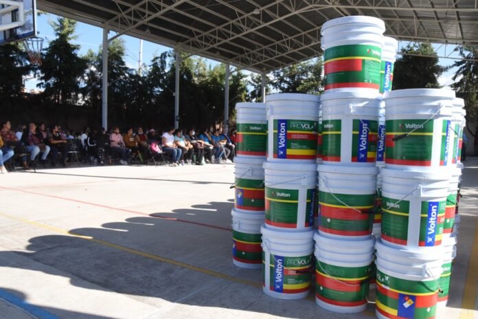 Los galones de pintura fueron entregados como parte de la gira de trabajo que realiza la presidenta municipal, Lorena Alfaro García, por colonias y comunidades, quien destacó la importancia de trabajar unidos, para lograr más en beneficio de todas y todos.