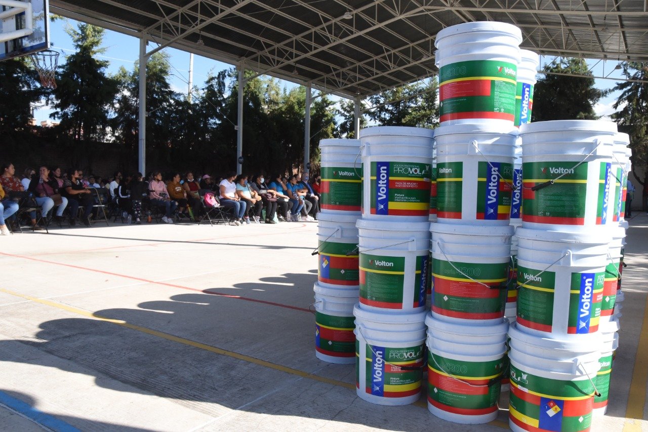 Irapuato, Gto. 1 octubre del 2022.- Con la entrega de 300 galones de pintura, el Gobierno Municipal contribuye a dar mantenimiento mayor a 60 escuelas, para dignificar los espacios en beneficio de estudiantes y profesores de diferentes instituciones educativas.