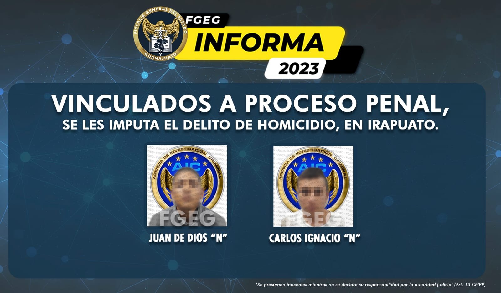 JUAN DE DIOS “N” y CARLOS IGNACIO “N” son presuntos responsables del delito de homicidio en agravio de Fernando “N”, y se encuentran en prisión de manera preventiva, hasta recibir sentencia por los presuntos actos criminales que se les acusa.