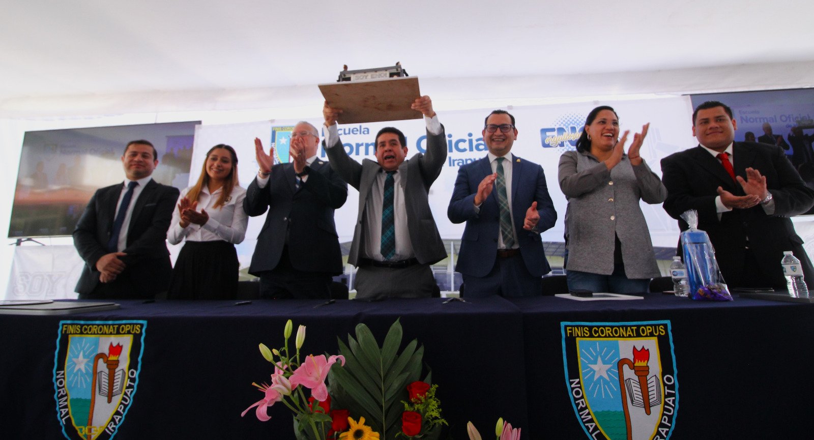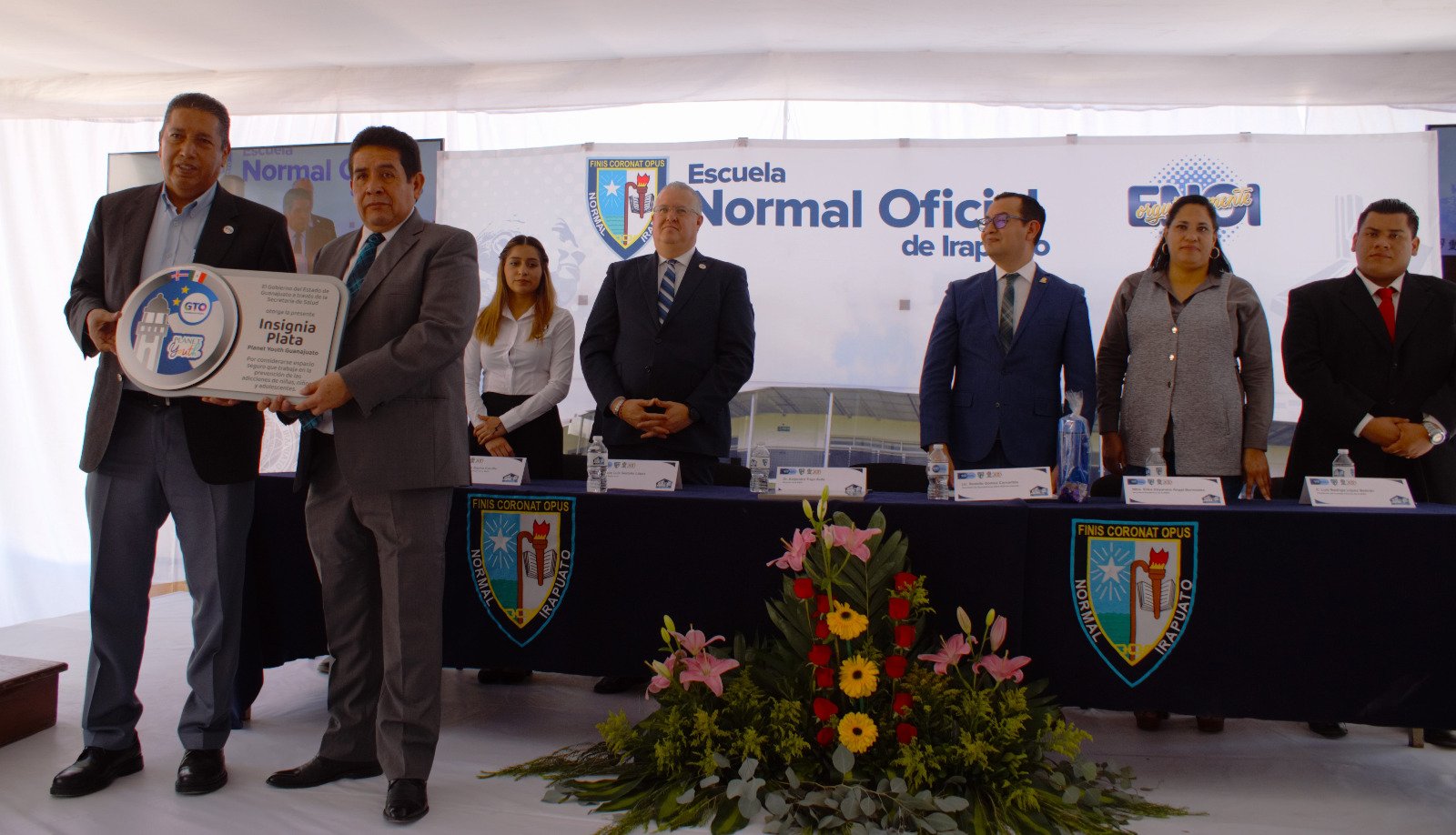 Durante el evento, que se desarrolló, en el patio central de la ENOI, la Secretaría de Educación de Guanajuato, a través del maestro Juan Luis Saldaña López, delegado de la Región IV, destacó la importancia de esta institución, en el crecimiento y desarrollo de Irapuato y el estado.