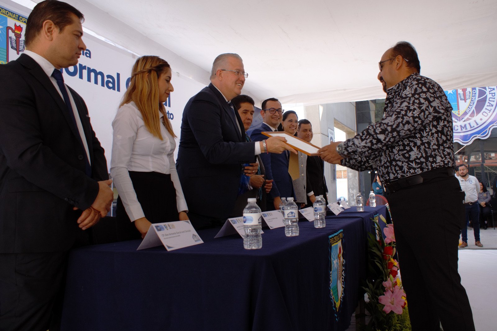 Como parte del acto solemne, se realizó la entrega de reconocimientos a ex directivos y docentes jubilados, quienes sirvieron en las aulas de la Escuela Normal, así como, por parte de la Secretaría de Salud, de la insignia Planet Youth.