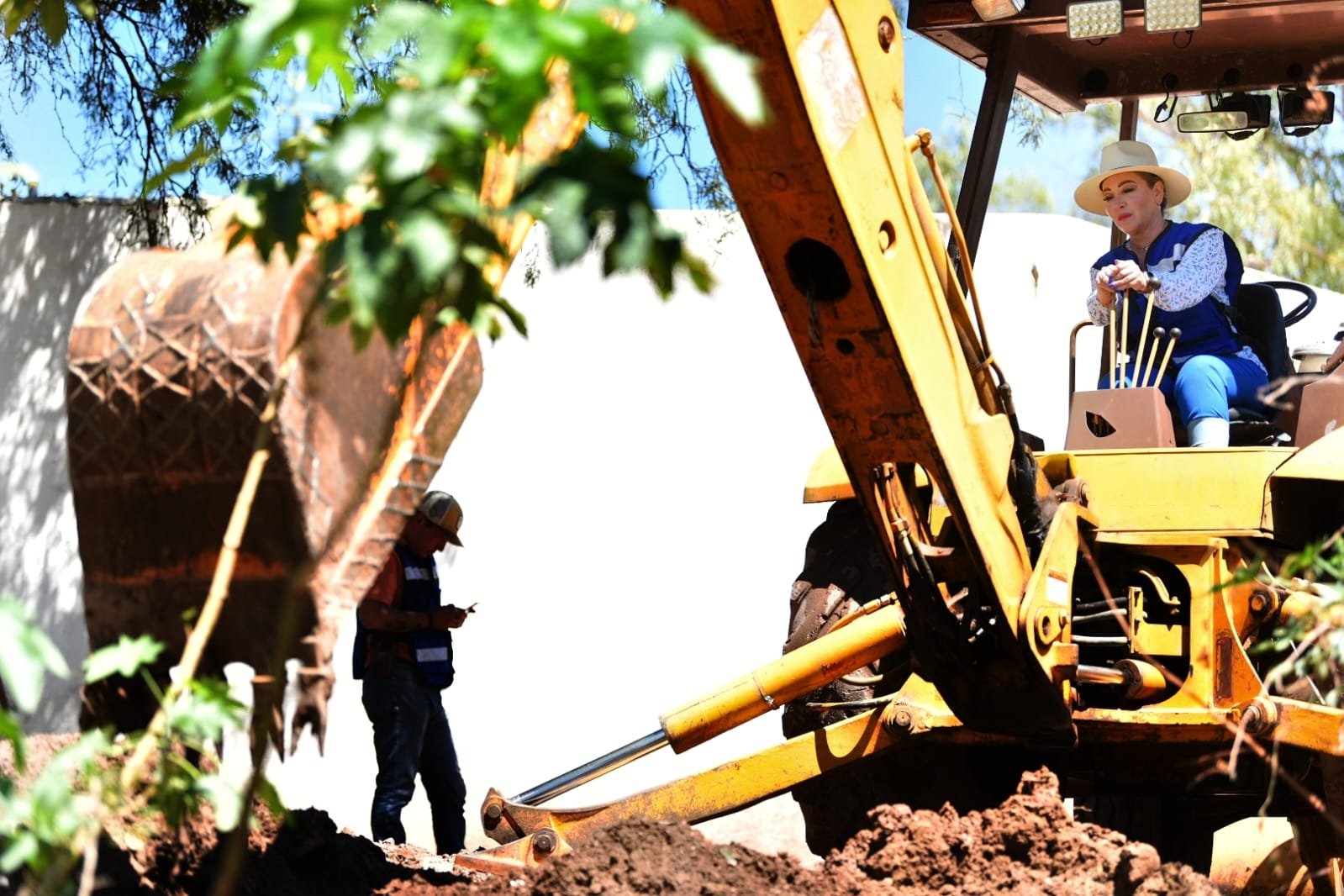 Para brindar seguridad a niñas, niños y adolescentes de dicha comunidad, la presidenta del DIF Municipal, Samantha Smith, acudió a brindarle apoyo al personal de Obra Pública en el sitio de la intervención.