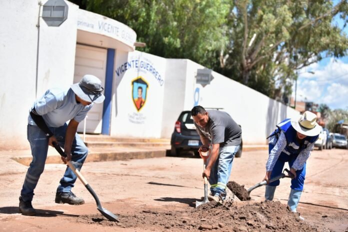 Guanajuato, Gto.; 11 de julio de 2023.- Como parte de las acciones que el Gobierno Municipal de Guanajuato implementa para mejorar espacios públicos mediante el modelo de prevención de adicciones Planet Youth, se realizaron trabajos para evitar encharcamientos en la calle de la escuela primaria “Vicente Guerrero” de Yerbabuena.