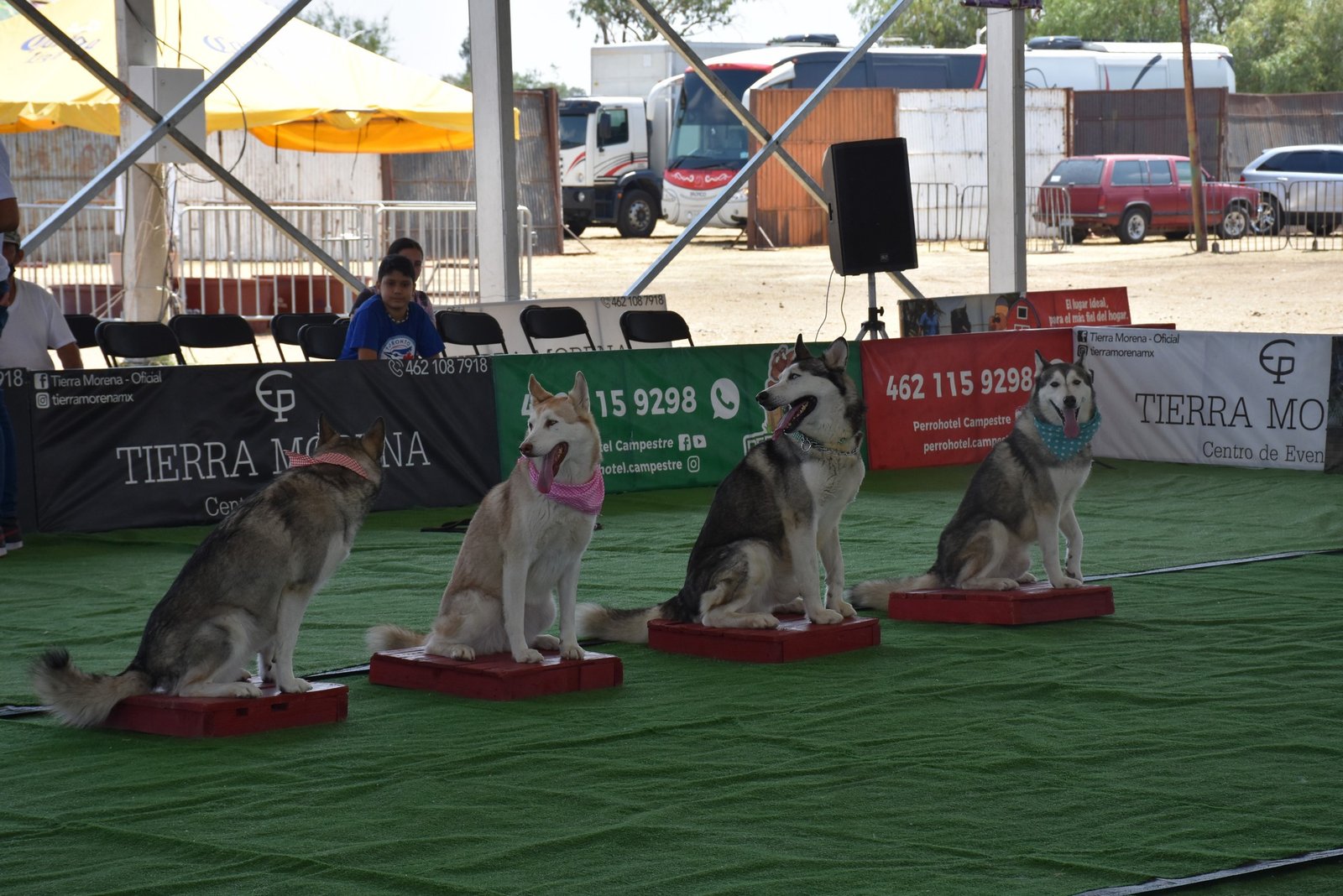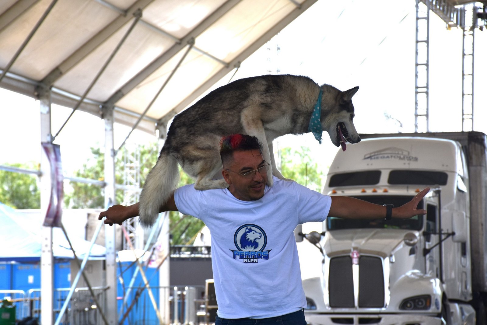La Exhibición corrió a cargo del entrenador profesional Gibrán Tallavaz Macías, director general de Perros Alfa de Querétaro, escuela altamente calificada en el entrenamiento y asesorías en cuanto al cuidado de los perros; en esta exhibición, presentó a 4 perros de raza Husky, que es preciso mencionar, es de las razas más complicadas para el adiestramiento, aunque el público asistente pudo observar de todos los trucos que dichas mascotas son capaces de hacer.