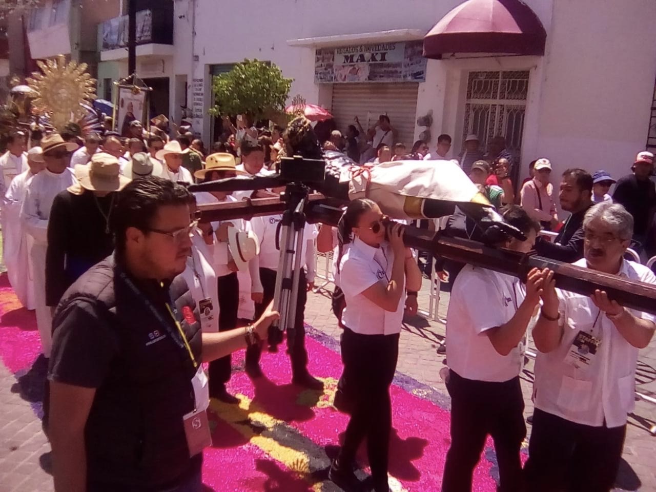 En el andador Revolución fue colocado el tapete monumental para recibir al Cristo Negro, y tras su regreso al santuario diocesano, se llevó a cabo la misa encabezada por el obispo de la diócesis de Irapuato, Monseñor Enrique Díaz Díaz.
