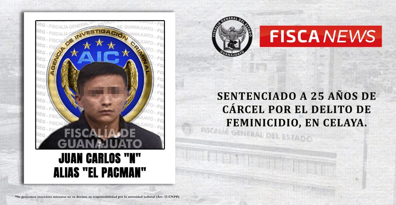 La Fiscalía de Guanajuato obtuvo una sentencia de 25 años de cárcel en contra de un sujeto apodado “El Pacman”, acusado como presunto feminicida de Casandra “N”, asesinada el 28 de diciembre de 2021, en un domicilio en el Ejido de San Felipe en la colonia Ejidal, en Celaya.