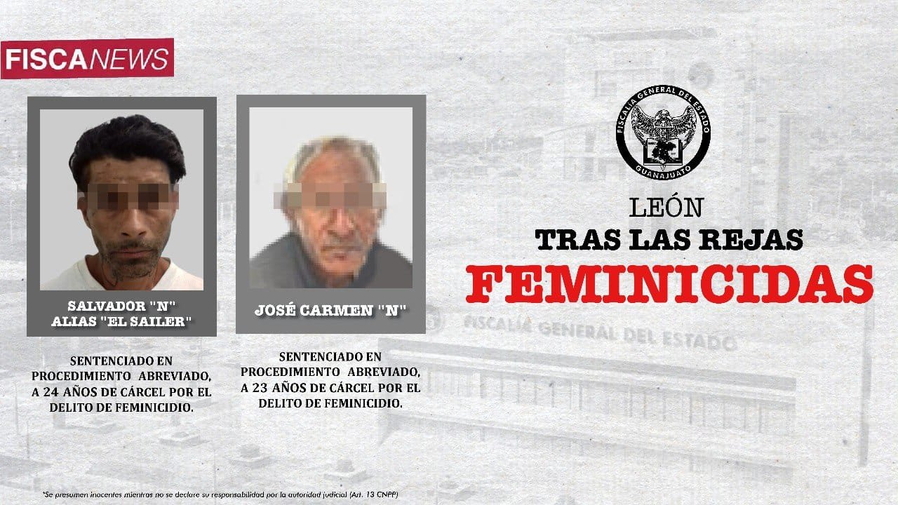 León, Gto., 16 de junio de 2023.- La Fiscalía de Guanajuato obtiene condena de cárcel para dos feminicidas en León. El Ministerio Público presentó pruebas ante un Juez para evidenciar a SALVADOR “N” y a JOSÉ CARMEN “N”, como autores de los feminicidios de sus parejas, por lo que ya se encuentran purgando condena tras las rejas.