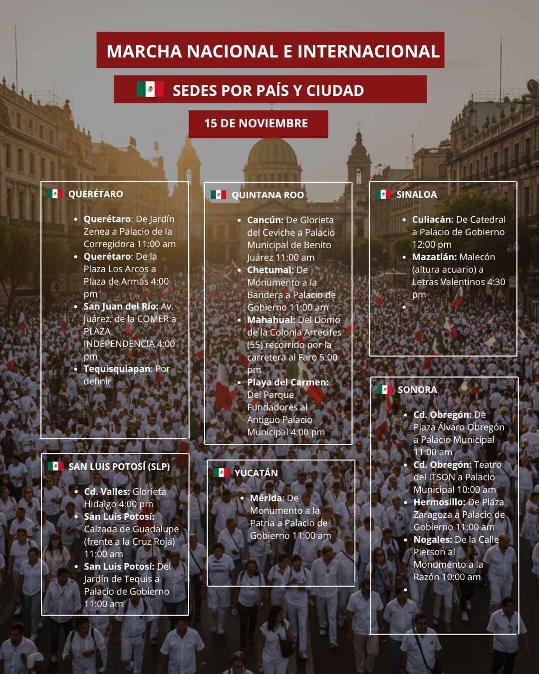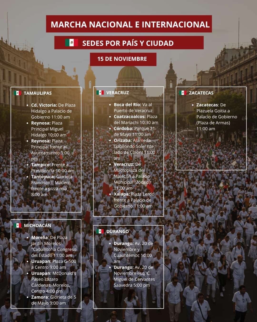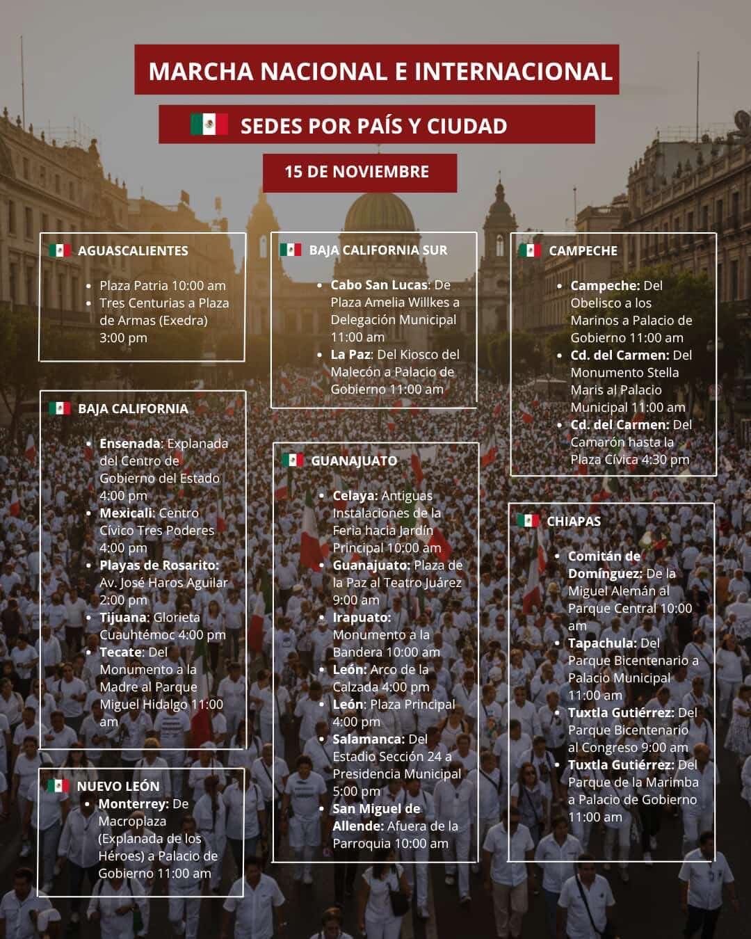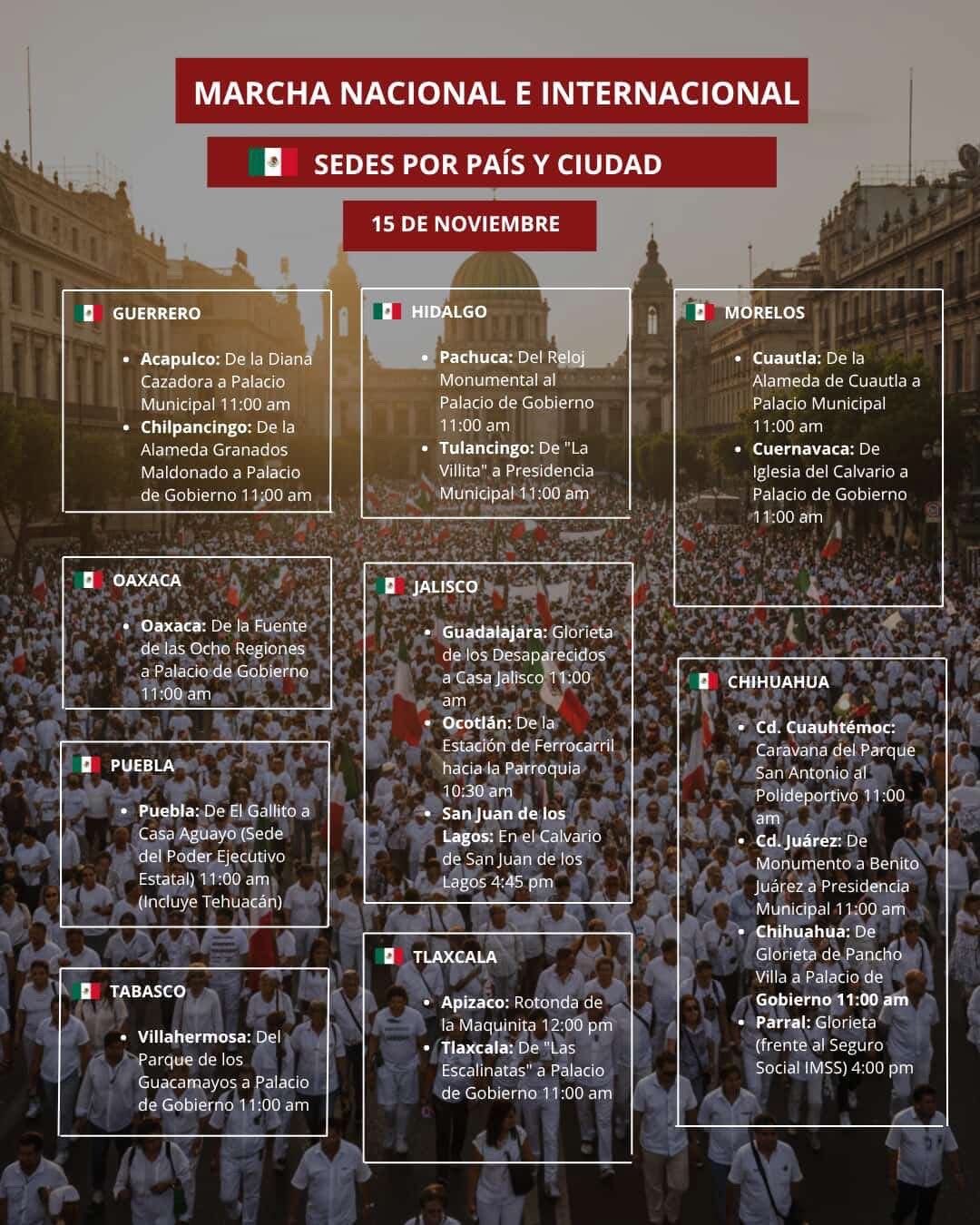 Las marchas iniciarán en la Ciudad de México a las 10:00 horas en el Ángel de la Independencia, desde donde miles de jóvenes partirán hacia el Zócalo. También se esperan concentraciones en el Monumento a la Revolución y Paseo de la Reforma, donde más participantes se sumarán a la movilización.