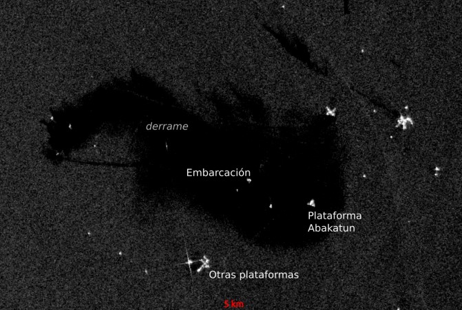 De acuerdo con estos datos, el derrame alcanzó una extensión de aproximadamente 50 kilómetros cuadrados frente a las costas de Campeche. Las imágenes, precisó, provienen de los satélites Sentinel-1 y Sentinel-2 de la Agencia Espacial Europea y son de acceso público.