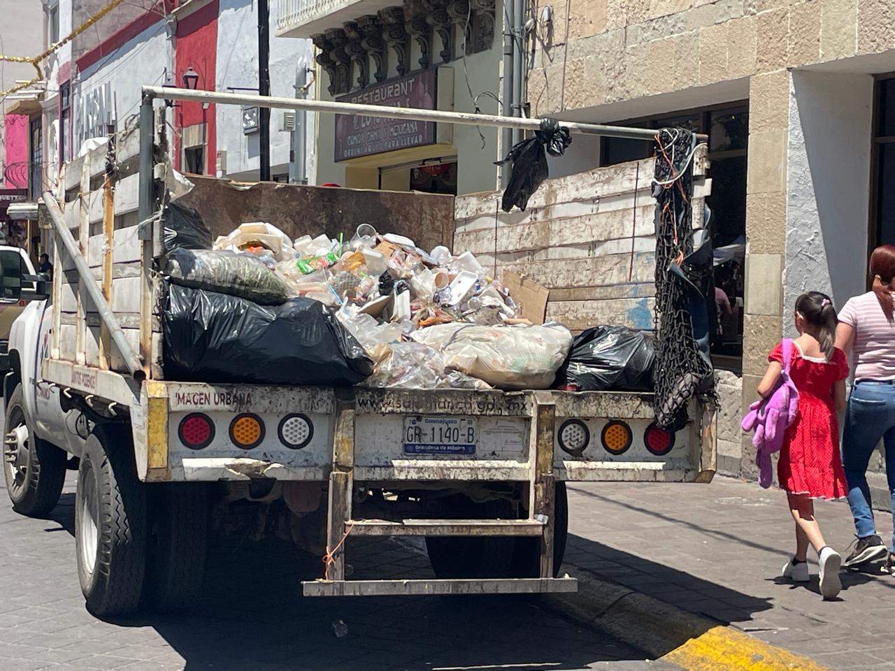 “Ahorita llevo tres viajes, en cada viaje son 3 toneladas y por lo menos daremos unas 3 vueltas más, entonces más o menos este día solo del jardín principal y alrededores serán 18 toneladas”, dijo uno de los responsables de un vehículo recolector que alrededor de las 11:30 de la mañana recibía los contenedores de trabajadores de limpia
