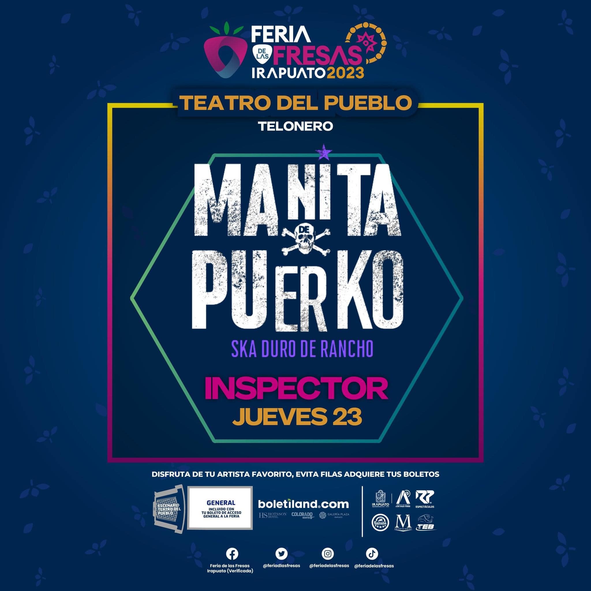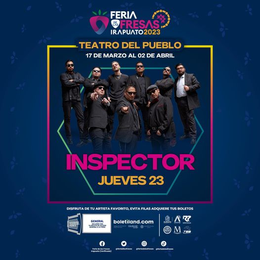 Como parte del cartel del Teatro del pueblo en la feria de las fresas 2023, el día de hoy se presentará el grupo musical Inspector.