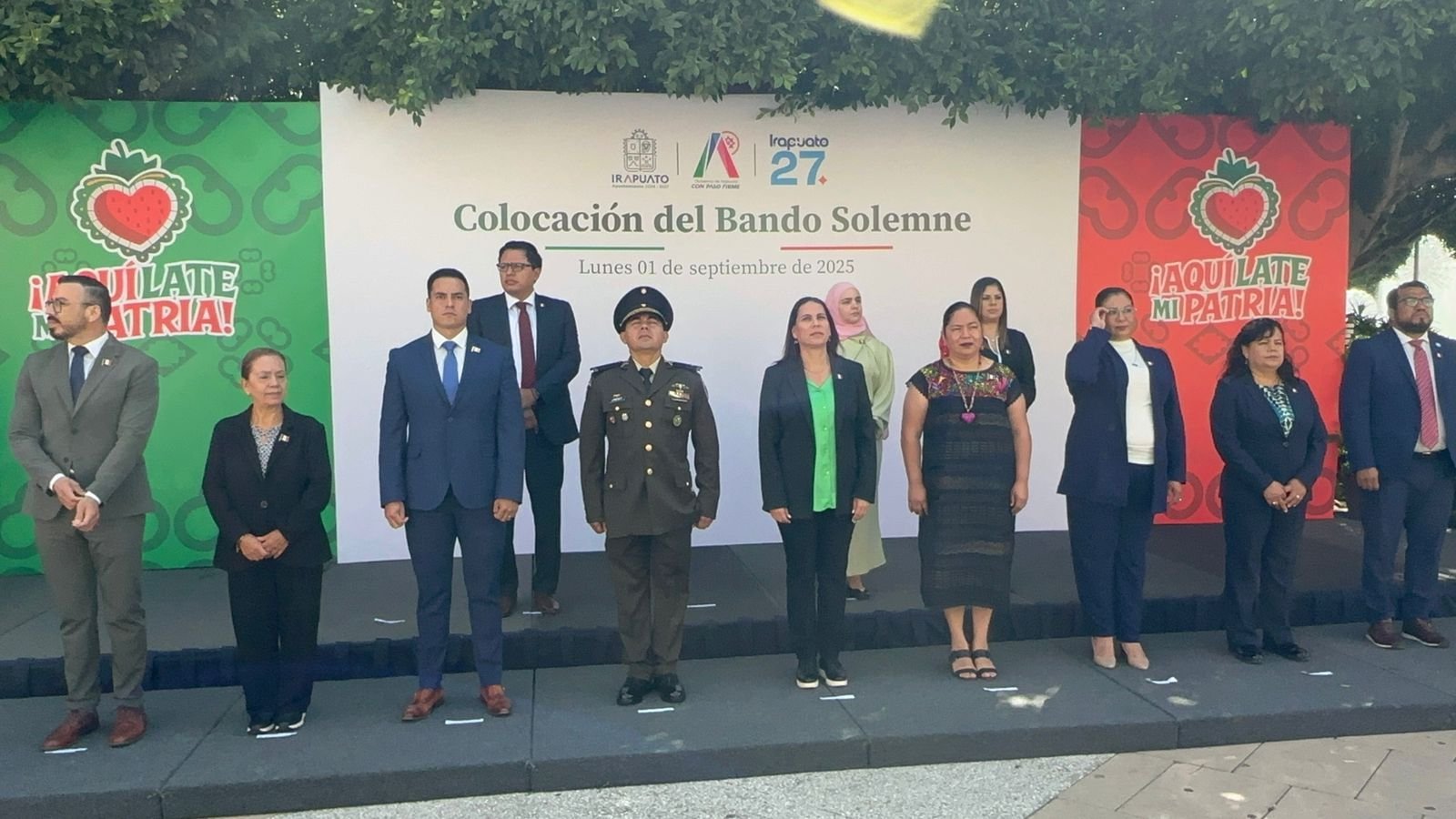 La Presidencia Municipal de Irapuato dio inicio a las celebraciones del mes patrio con la tradicional colocación del bando solemne en el pórtico de la Casa Municipal, un acto protocolario que marca el arranque de septiembre y la conmemoración de la Independencia de México.