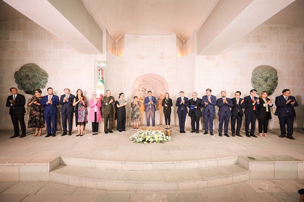 “Aquí nació México. Fuimos precursores de la libertad y de la justicia, iniciadores del movimiento de la Independencia Nacional, en recintos históricos como esta magnífica Alhóndiga de Granaditas”, expresó el Mandatario Estatal.