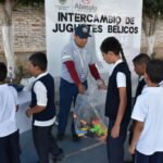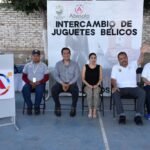 De esta manera, cientos de niñas y niños se deshicieron de sus juguetes que tenían alguna tendencia bélica, intercambiándolos por útiles, morrales, balones o cilindros para tomar agua, además, escucharon el mensaje del Síndico Agustín Aguirre en representación de la Presidenta Municipal Rocío Cervantes Barba, motivándolos a divertirse sanamente, sin violencia y procurando ejercitarse.