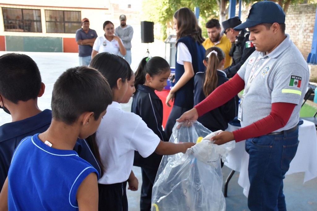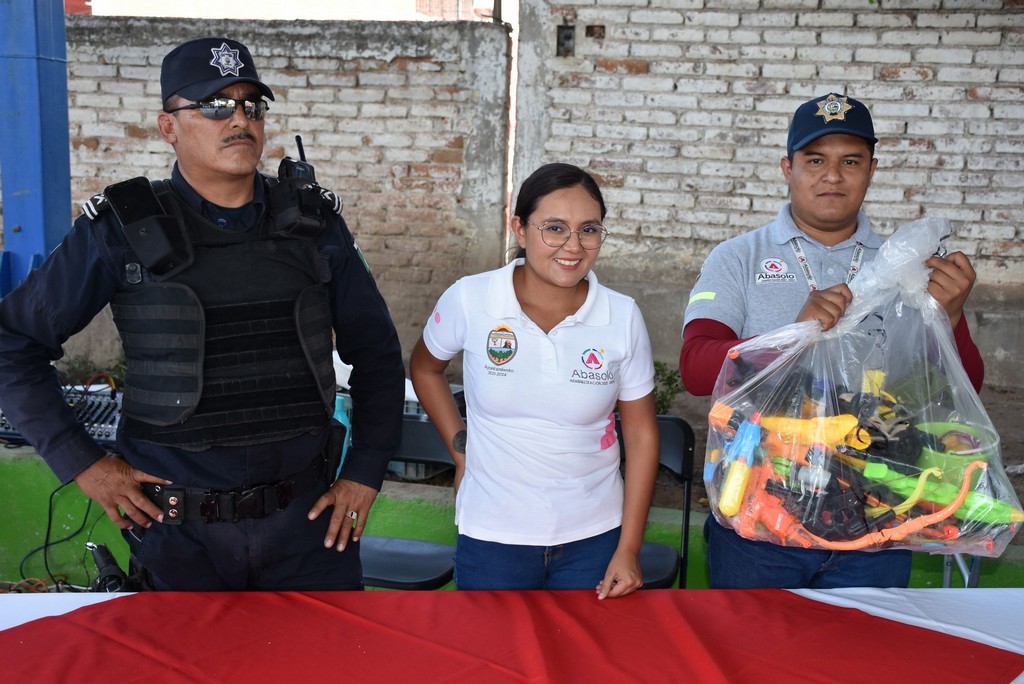 De esta manera, cientos de niñas y niños se deshicieron de sus juguetes que tenían alguna tendencia bélica, intercambiándolos por útiles, morrales, balones o cilindros para tomar agua, además, escucharon el mensaje del Síndico Agustín Aguirre en representación de la Presidenta Municipal Rocío Cervantes Barba, motivándolos a divertirse sanamente, sin violencia y procurando ejercitarse.
