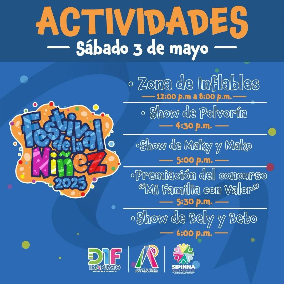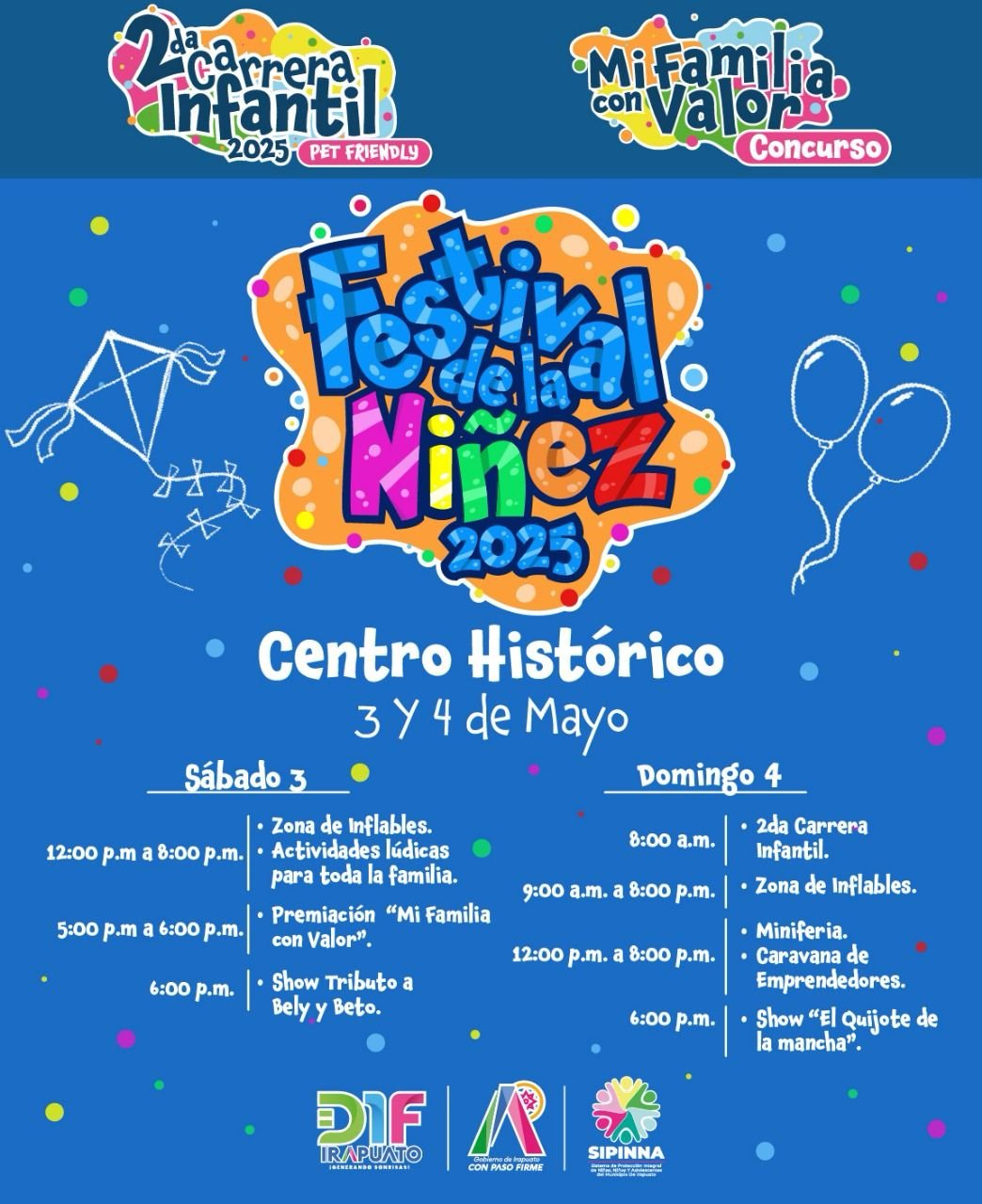 Con el objetivo de fomentar la convivencia familiar y destacar la importancia de los valores en el desarrollo de la niñez, el Sistema DIF Irapuato realizará el Festival de la Niñez los próximos 3 y 4 de mayo, con actividades recreativas en el Centro Histórico y un concurso de videos que premiará la creatividad infantil.