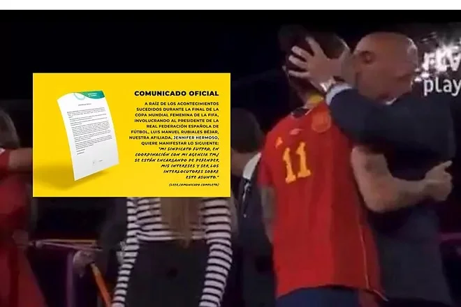 Jenni Hermoso a roto silencio sobre el beso que le dio sin consentimiento Luis Rubiales en la premiación del título que España acababa de ganar en Australia tras derrotar en la final del Mundial Femenino 2023 a Inglaterra por 1-0. La futbolista del Pachuca ha hecho un comunicado a través del sindicato Futpro, al que está afiliada, y NO defiende a Rubiales. «Mi sindicato FUTPRO, en coordinación con mi agencia TMJ se están encargando de defender mis intereses y ser los interlocutores sobre este asunto.»