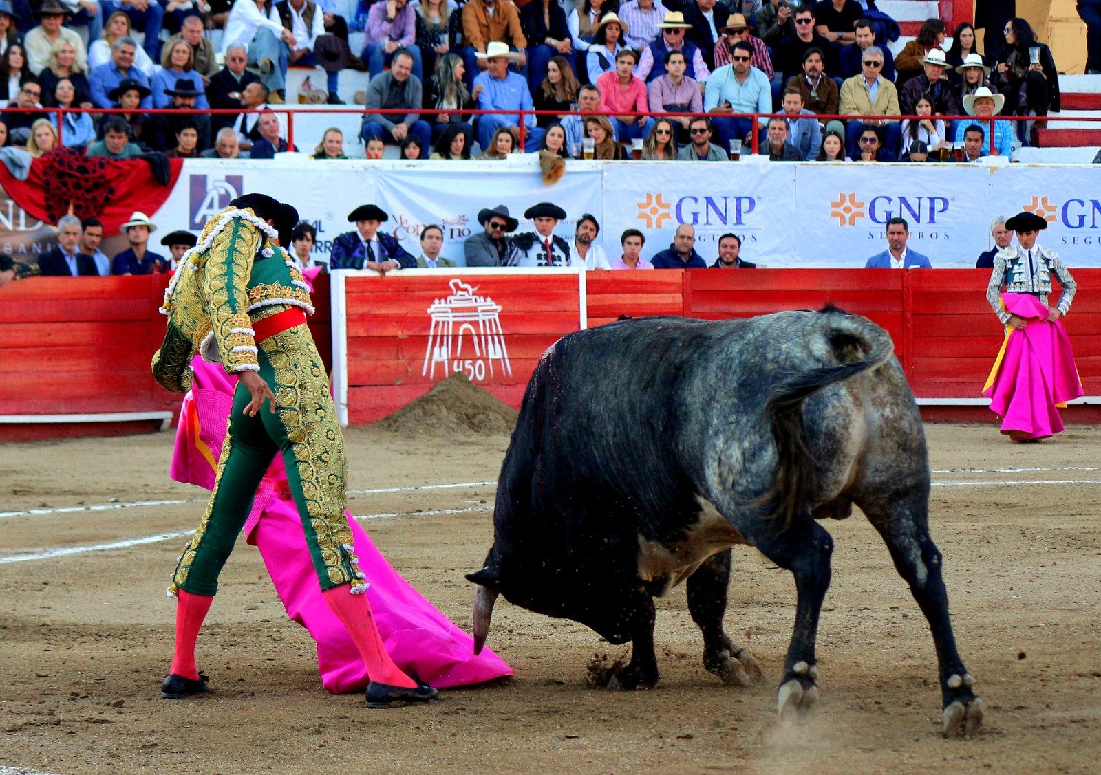 Juan Pablo Sánchez vino por enésima vez a la plaza La Luz para desgranar su arte y temple, pero ayer dejó también muestras de su poderío con los toros y si no le embisten él lo hace y les saca faenas de mucho valor y exposición, pegando sus muslos a la punta de los pitones, y aunque no falta quien diga que a un toro parado cualquiera, pues no creo, porque esos toros parados también matan. Con su primero justamente pasó eso, un torote basto y agarrado al piso que pegaba arreones, Juan Pablo estuvo muy firme y entregado y se pegó un arrimón de miedo, dejando muestra del poder que tiene para someter a los toros, pegando un trincherazo de pintura. A su segundo lo recibió con una larga de rodillas y ya de pie ligó unas buenas verónicas con un remate preciosos a una mano, luego ya con la muleta comenzó de rodillas y el torito que humillaba mucho clavó los pitones en la arena y dio una vuelta de campana espectacular, pero quedó mermado, aún así el torero ligó una tanda de derechazos que le fue jaleada, después vinieron tandas largas por la derecha e izquierda con pasajes muy toreros, pases templaditos en redondo, remates y adornos que la gente aplaudió y coreaba, al final el toro se sintió podido y se fue a las tablas, pero ahí Juan Pablo volvió a meterse entre los cuernos y arrancarle más pases, para al final despacharlo de un estoconazo y la gente exigió las orejas para premiarlo.