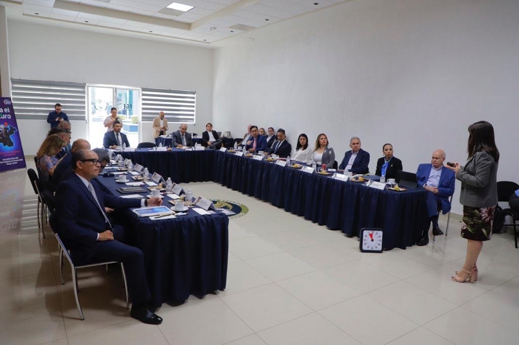Reunidos en el edificio central del Complejo Miguel Hidalgo y Costilla de la Fiscalía de Guanajuato, el grupo organizador del taller sectorial conformado por Eduardo Sojo Garza-Aldape, Presidente del Observatorio INNOVA GOB; Héctor López Santillana, Director General de Guanajuato Puerto Interior; Graciela de la Luz Amaro Hernández, Directora General del Instituto de Planeación del Estado de Guanajuato (IPLANEG); Héctor Tinajero Muñoz, magistrado propietario del Supremo Tribunal de Justicia del Estado de Guanajuato; Gloria Jasso Bravo, Magistrada propietaria del Supremo Tribunal de Justicia del Estado de Guanajuato; Carlos Eduardo Castro Alcudia, Especialista en Sistema Penal Acusatorio, Bureau of International Narcotics and Law Enforcement Affairs (INL); María del Carmen Novoa Cancela, Lead Advisor of the Mexican Laboratory of Innovation in Criminal Justice; Luis Antonio Alanís Villarreal, Ex presidente del Consejo Externo de Consulta de la FGEG.