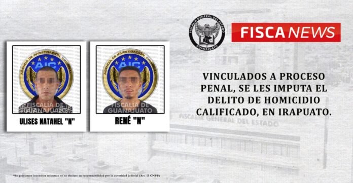 Irapuato, Gto., 27 de junio de 2023.- La Fiscalía de Guanajuato detuvo a dos sujetos que juntos cometían actos criminales, entre sus delitos esta el asesinato de Edher Jhordan “N”, a quien sacaron de su domicilio para ejecutarlo la tarde del 02 de junio de 2023, en la colonia Las Heras en Irapuato.