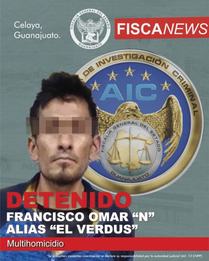 Guanajuato, Gto.- 21 de diciembre de 2023.-La Fiscalía de Guanajuato logró ubicar y detener con orden de aprehensión al presunto autor material de los asesinatos de cinco jóvenes, registrado el 03 de diciembre 2023, en la Colonia Primera Fracción de Crespo en la ciudad de Celaya.