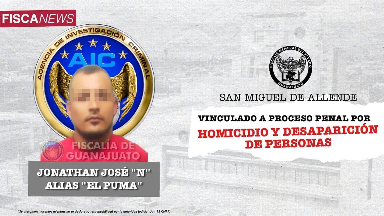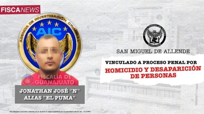 En audiencia inicial, la Fiscalía de Guanajuato presentó las pruebas con las que fue posible imputar a JONATHAN JOSÉ “N”, por su probable responsabilidad en los delitos de homicidio y desaparición cometida por particulares, a lo que la Jueza resolvió con su vinculación a proceso penal con prisión preventiva mientras se determina su sentencia.