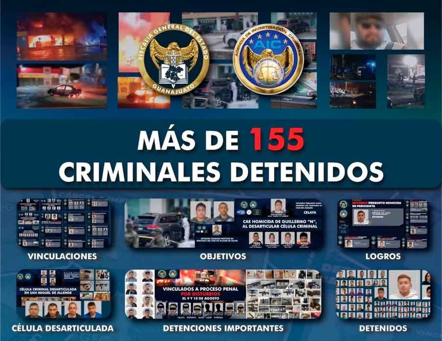 - La Fiscalía General del Estado logró la captura de más de 155 criminales, desarticuló células delictivas, aseguró armas, droga y diversos objetos.