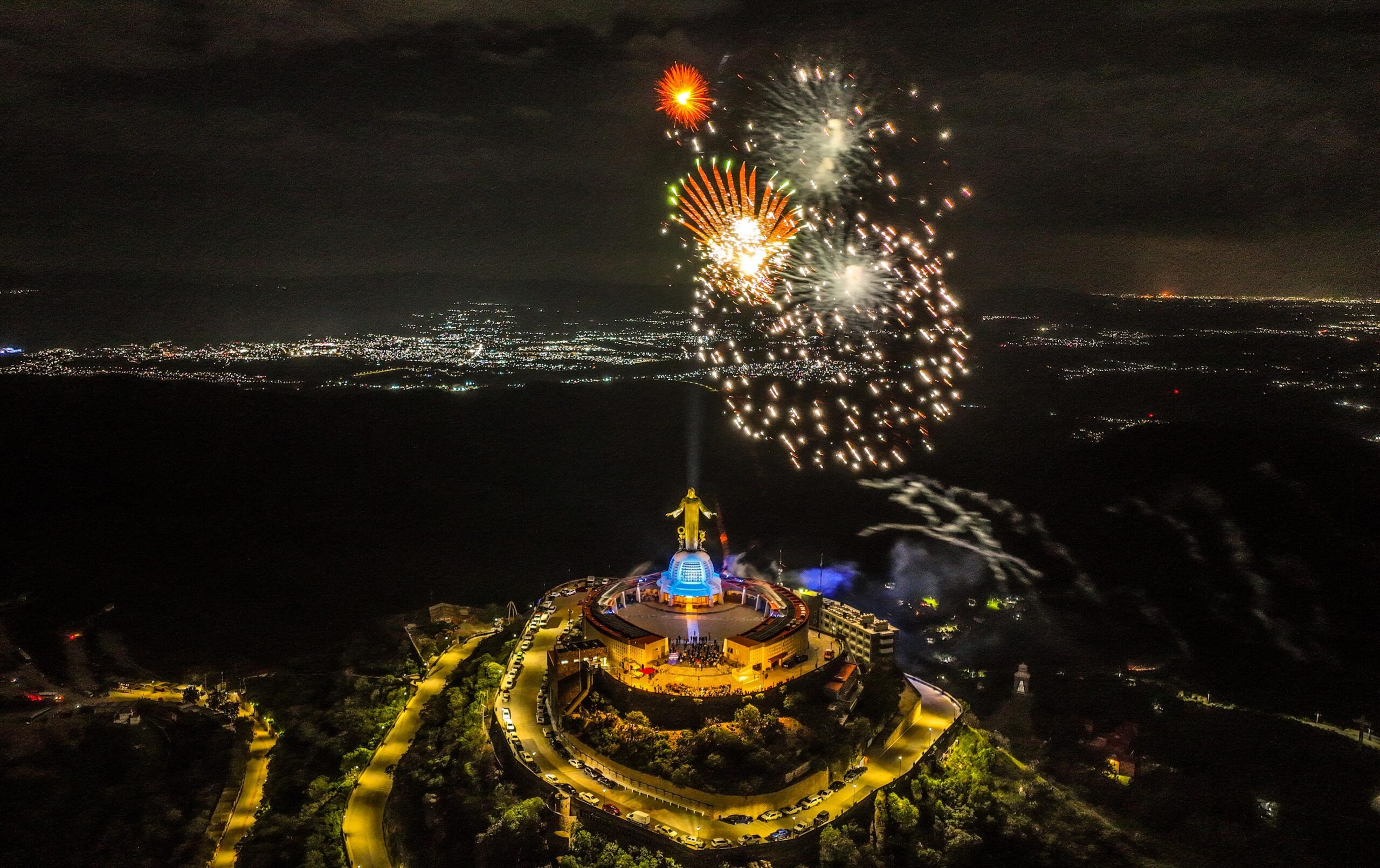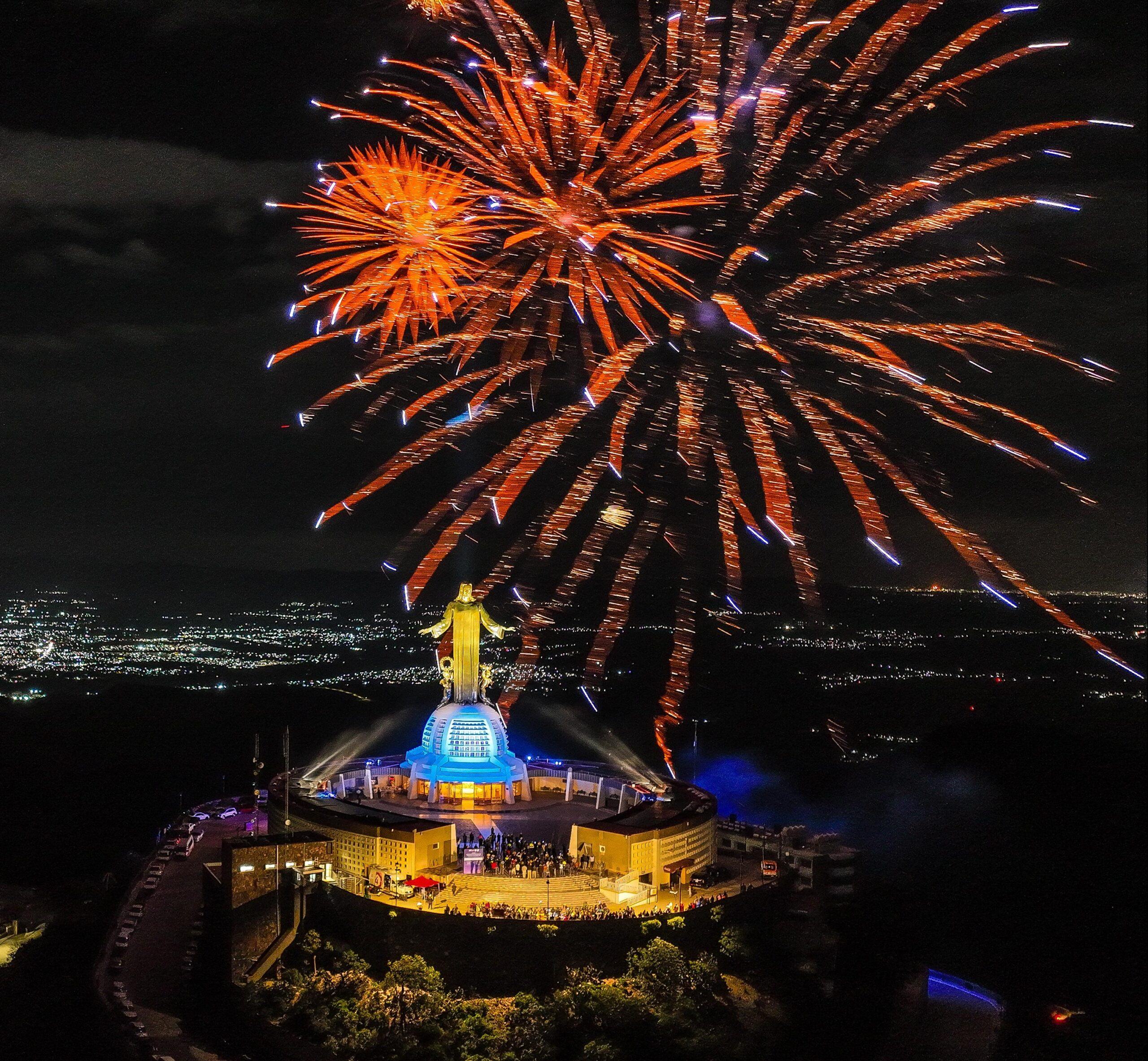 En estas acciones se iluminaron el monumento, la cúpula del templo, la explanada, la techumbre, el muro de estacionamiento, el muro de dormitorios, el andador, las columnas del acceso principal y los muros de contención.