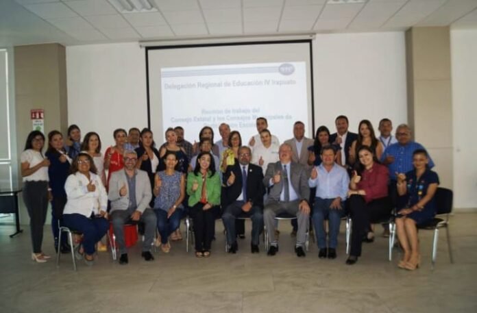 Irapuato, Gto. 09 de mayo de 2023. – Con la finalidad de generar de manera conjunta acciones formativas que les permitan a las niñas, niños y adolescentes, un desarrollo pleno e integral dentro de sus entornos escolares, se reunieron en esta ciudad las y los presidentes de los Consejos Municipales de Participación Escolar en la Educación (COMUPAE) de los siete Municipios que integran la Delegación Regional IV de la Secretaría de Educación de Guanajuato (SEG).