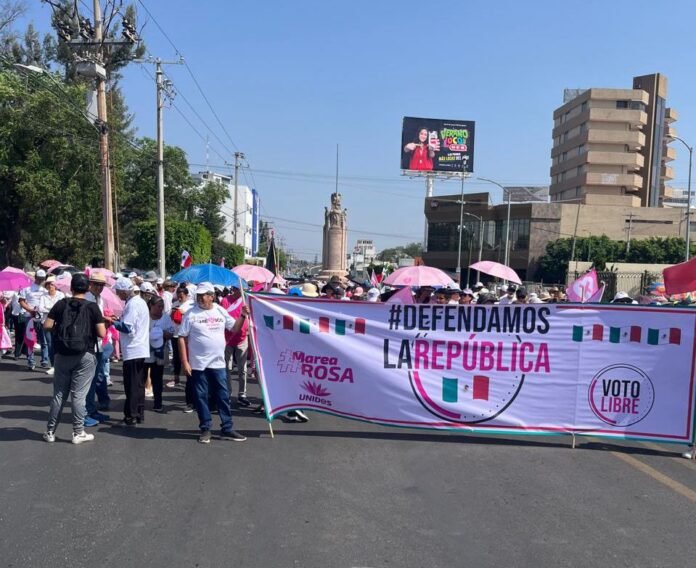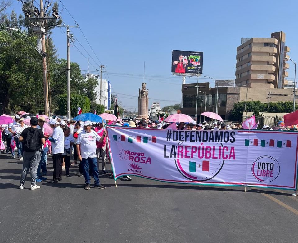 Integrantes y simpatizantes de la llamada Marea Rosa, marcharon por las principales avenidas del municipio, esto como apoyo a la candidata de la coalición Fuerza y Corazón por México, Xóchitl Gálvez Ruiz.