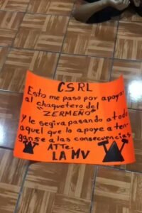 La masacre, aseguran que se trata de un ajuste de cuentas entre carteles, ya que en el lugar dejaron cartulinas con mensajes alusivos a estos, en las cuales se les advierte que persona a las personas que apoyen a «Zermeño» le pasara lo mismo.