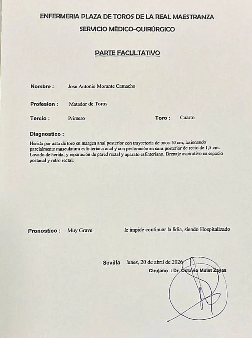 El diestro fue intervenido de urgencia en la enfermería del recinto y posteriormente trasladado al hospital Viamed Santa Ángela de la Cruz, donde permanece bajo observación médica. Aunque su estado sigue siendo delicado, reportes recientes indican que ha mostrado signos de evolución favorable tras ser llevado a planta.
