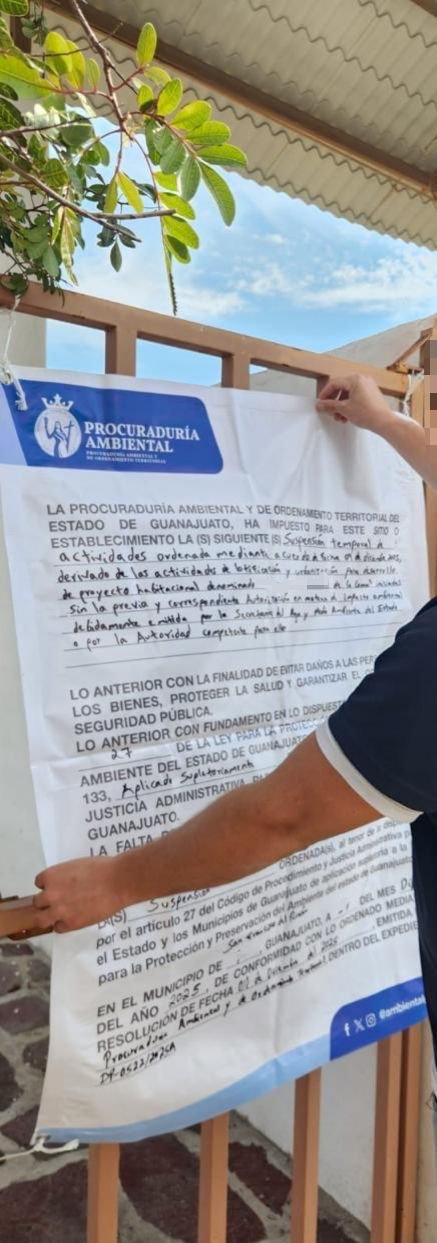 La Procuraduría Ambiental y de Ordenamiento Territorial (PAOT) suspendió las actividades de tres fraccionamientos ubicados dentro del Área Natural Protegida Presa La Purísima, en el ejido San Bernardo, municipio de San Francisco del Rincón, tras detectar que no contaban con la Autorización en Materia de Impacto Ambiental requerida para este tipo de desarrollos.