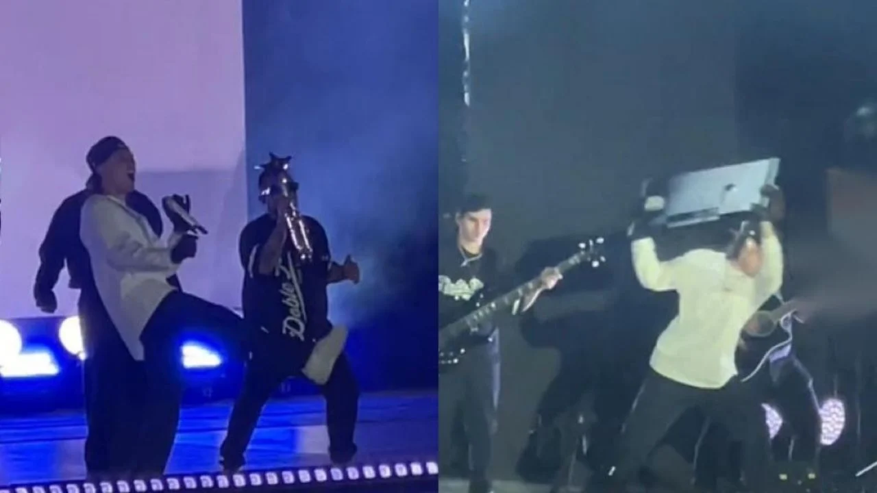 En uno de sus recientes conciertos, el cantante Peso Pluma generó controversia al destruir uno de los monitores en el escenario a base de patadas. El incidente ocurrió hace unos días en Ecuador, cuando durante su presentación, perdió el control y deliberadamente pisó y pateó la pantalla que funcionaba como teleprompter. Finalmente, la lanzó cerca del público, dejando el dispositivo completamente inservible.