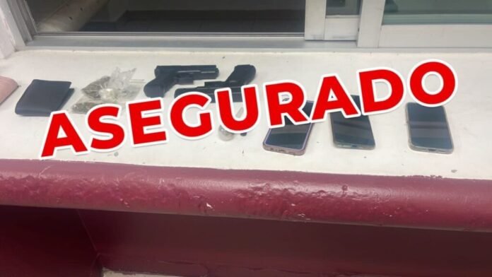 Por lo anterior, los oficiales solicitaron permiso a la dueña del inmueble para ingresar e inspeccionar el lugar, en donde se encontraron a ambos sujetos que fueron identificados por la víctima, tras realizar la inspección correspondiente se encontró entre sus pertenencias los aparatos que habían sido robados, así como un bolso vacío, un arma de plástico similares a una real y dos envoltorios con sustancias ilícitas.