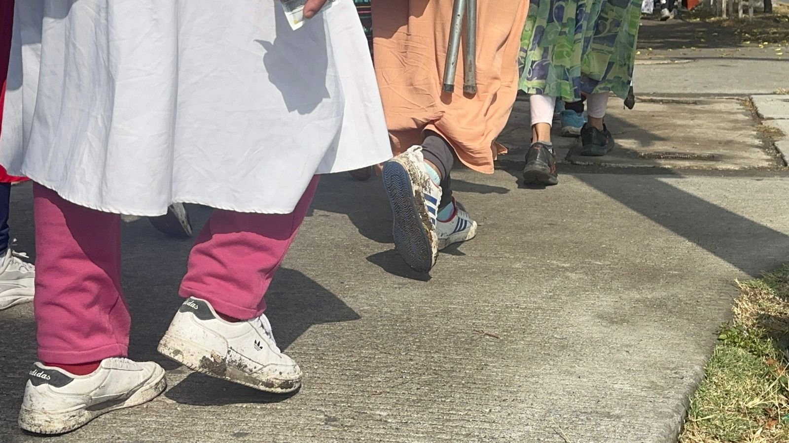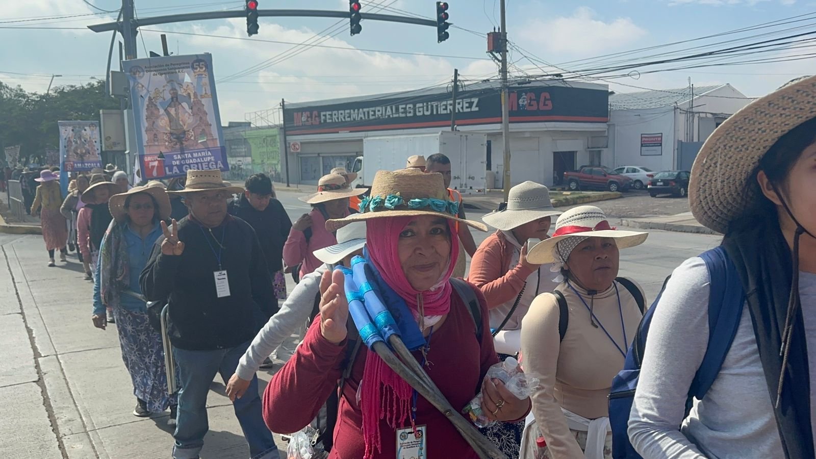 Durante el trayecto, se observó a peregrinos portando gafetes con datos personales y de contacto, una medida preventiva ante los riesgos del camino, que incluye zonas de alta circulación vehicular.