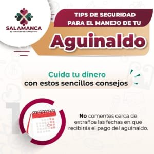 1.- No comentes cerca de extraños las fechas en que recibirás el pago del aguinaldo.