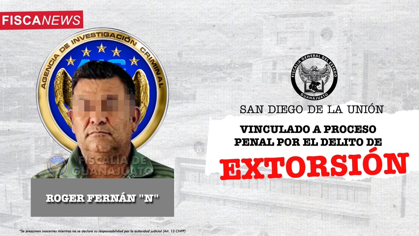 Al ser presentado ante la autoridad jurisdiccional, ROGER FERNÁN “N” fue vinculado a proceso penal por el delito de extorsión y se encuentra en prisión como medida cautelar mientras se determina su sentencia.