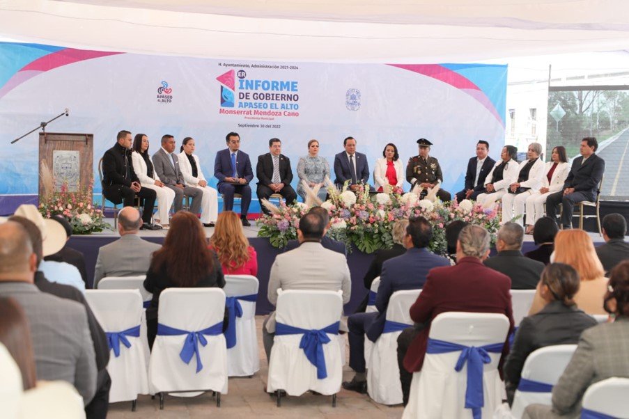 Apaseo el Alto, Guanajuato, 30 de septiembre de 2022.- Con la representación del gobernador, Diego Sinhué Rodríguez Vallejo el secretario de salud, Daniel Alberto Díaz Martínez recibió el Primer Informe de la alcaldesa de Apaseo el Grande, Guadalupe Montserrat Mendoza Cano a nombre del Ayuntamiento 2021-2024.