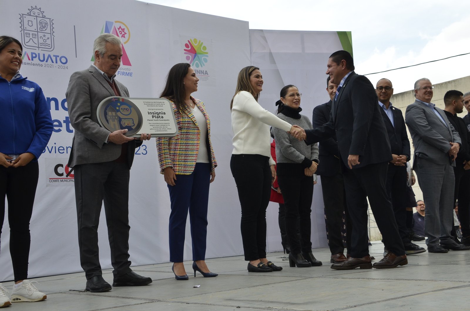 Irapuato, Guanajuato; 23 de noviembre del 2023.- El Sistema de Salud Gto entregó insignia plata Planet Youth a diferentes dependencias de la Administración Municipal de Irapuato.