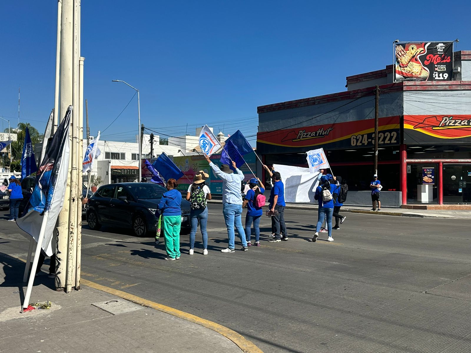 Con algunos banderines y y vestimenta del Partido Acción Nacional (PAN), recorrieron algunas zonas como la avenida Guerrero y Lázaro Cárdenas, donde destacaban el apoyo.